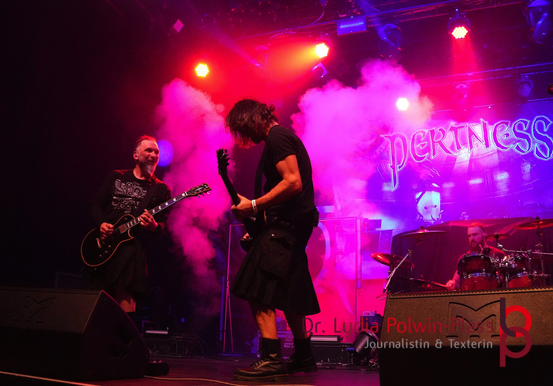 Pertness aus der Schweiz warteten danach mit klassischem Speed- und Heavy Metal. Seit den späten 1990er-Jahren aktiv, stehen sie stilistisch klar in der Tradition der 80er – schnelle Riffs, hymnische Refrains und eine unüberhörbare Liebe zu Motörhead, Accept und Judas Priest. Mit routinierter Spielfreude brachten sie die Batschkapp früh auf Betriebstemperatur.