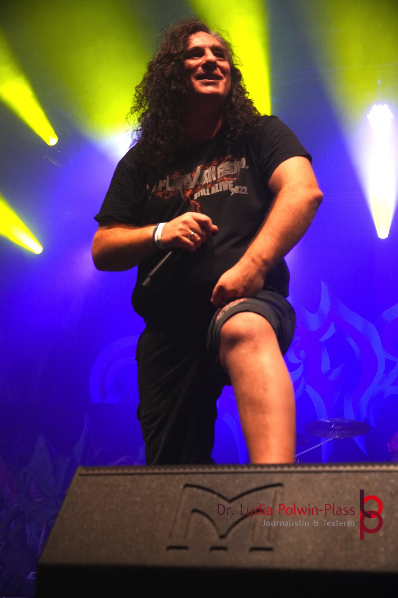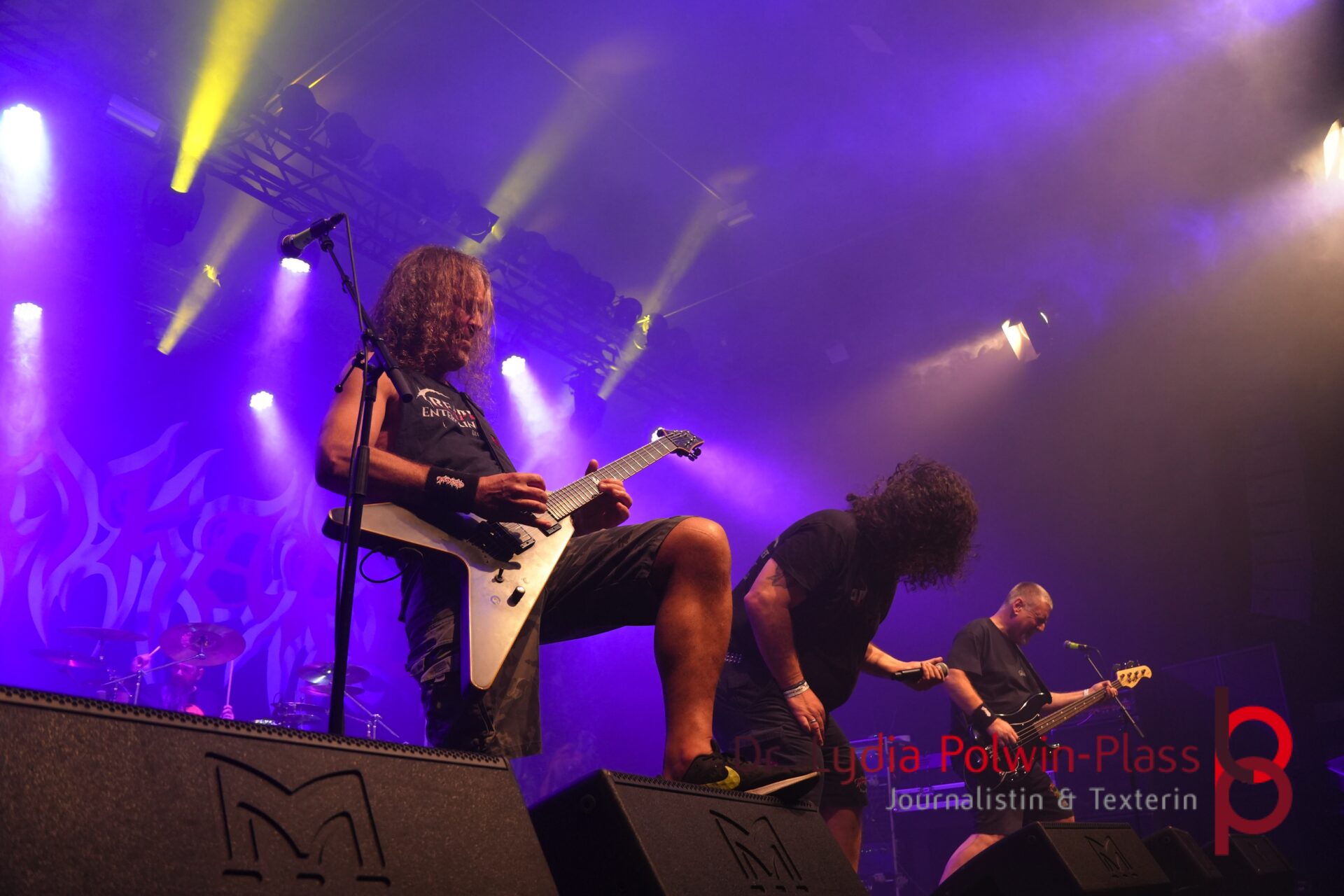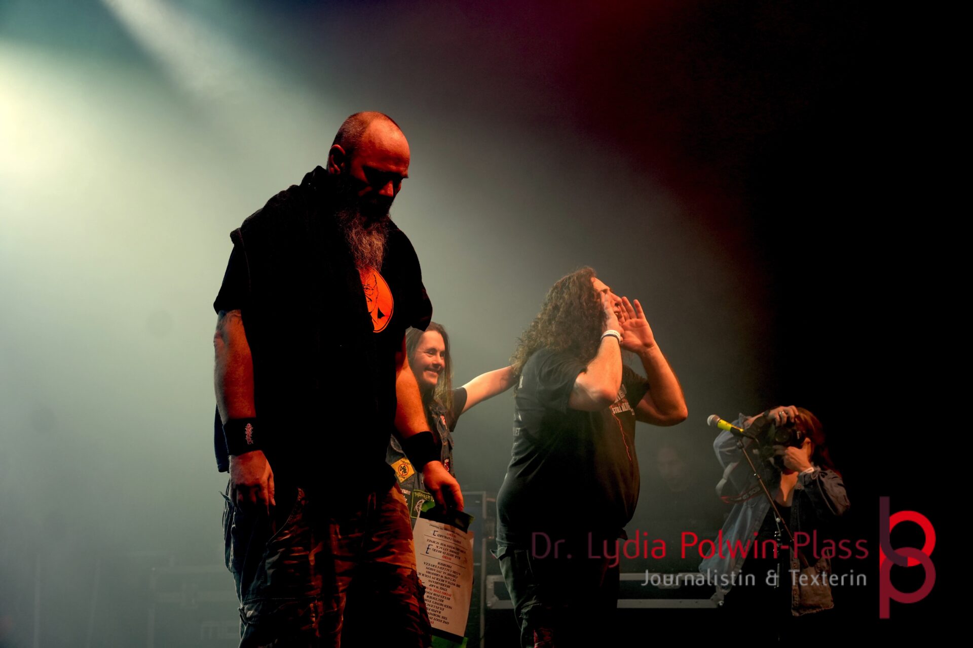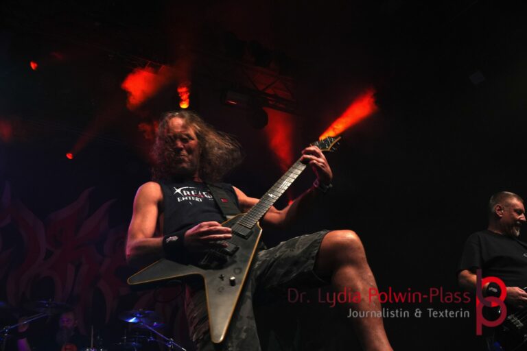 Der Abend in der Batschkapp war mehr als ein Konzert, eine ausgelassene Party und ein wahres Fest Frankfurter Metal-Geschichte. Eine Band mit über 40 Jahren auf dem Buckel trifft auf eine Venue mit eigener Historie, dazu Bier im Jubiläumsbecher für drei Euro – passender kann ein Heimspiel kaum sein.