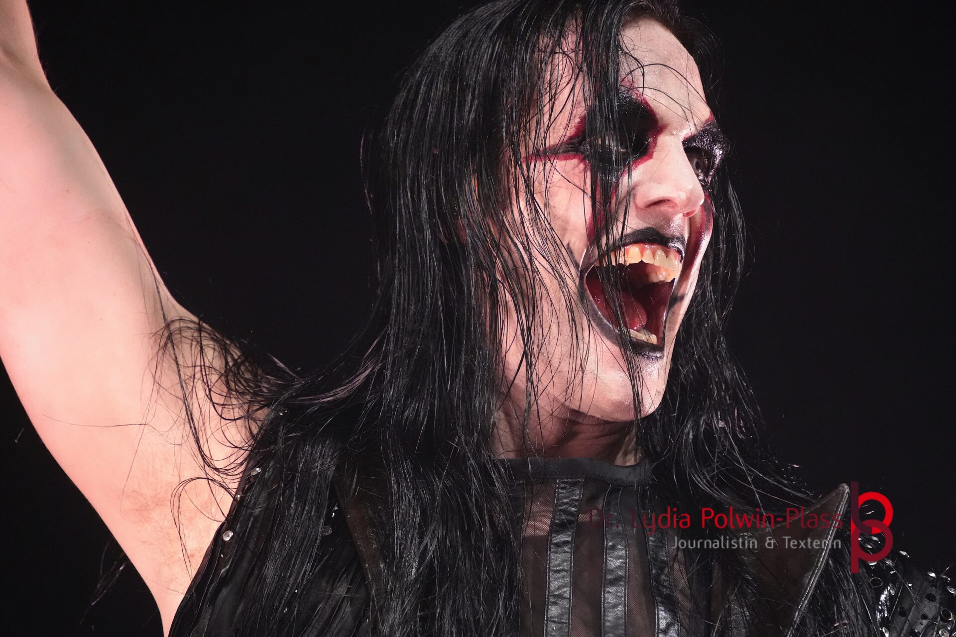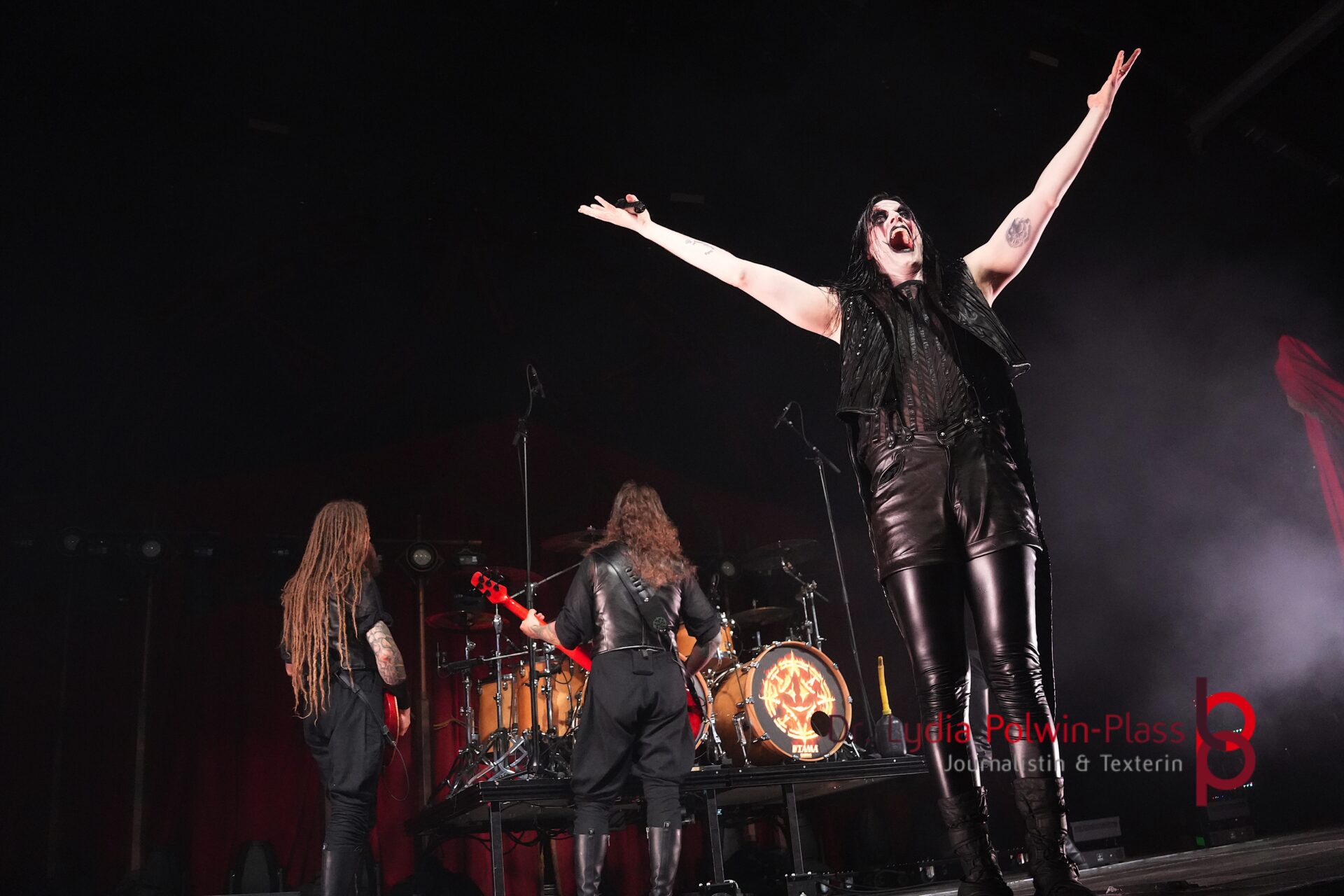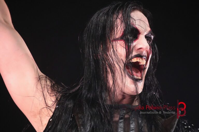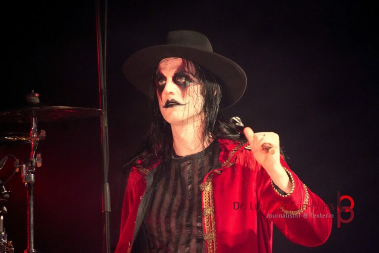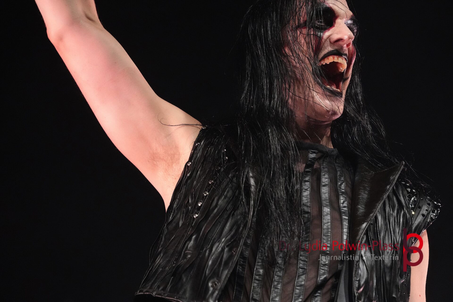 Als schließlich die 2001 gegründete schwedische Band Avatar die Bühne betrat, kippte die Stimmung endgültig in ekstatische Freude. Frontmann Johannes Eckerström enterte die Bretter, die die Welt bedeuten, mit einer Präsenz, die man kaum beschreiben kann – charismatisch, exzentrisch und unglaublich entertaining. Zwischen dämonischem Grinsen, Zirkusdirektor-Gesten und eruptiven Screams führte er das Publikum durch ein Set, das gleichermaßen brutal wie melodisch war. Mit fast perfektem Deutsch, angeblich ist die Mutter aus Deutschland, aber charmantem Akzent, versteht er es , das Publikum ab der ersten Sekunde für sich zu gewinnen und bestens zu unterhalten.