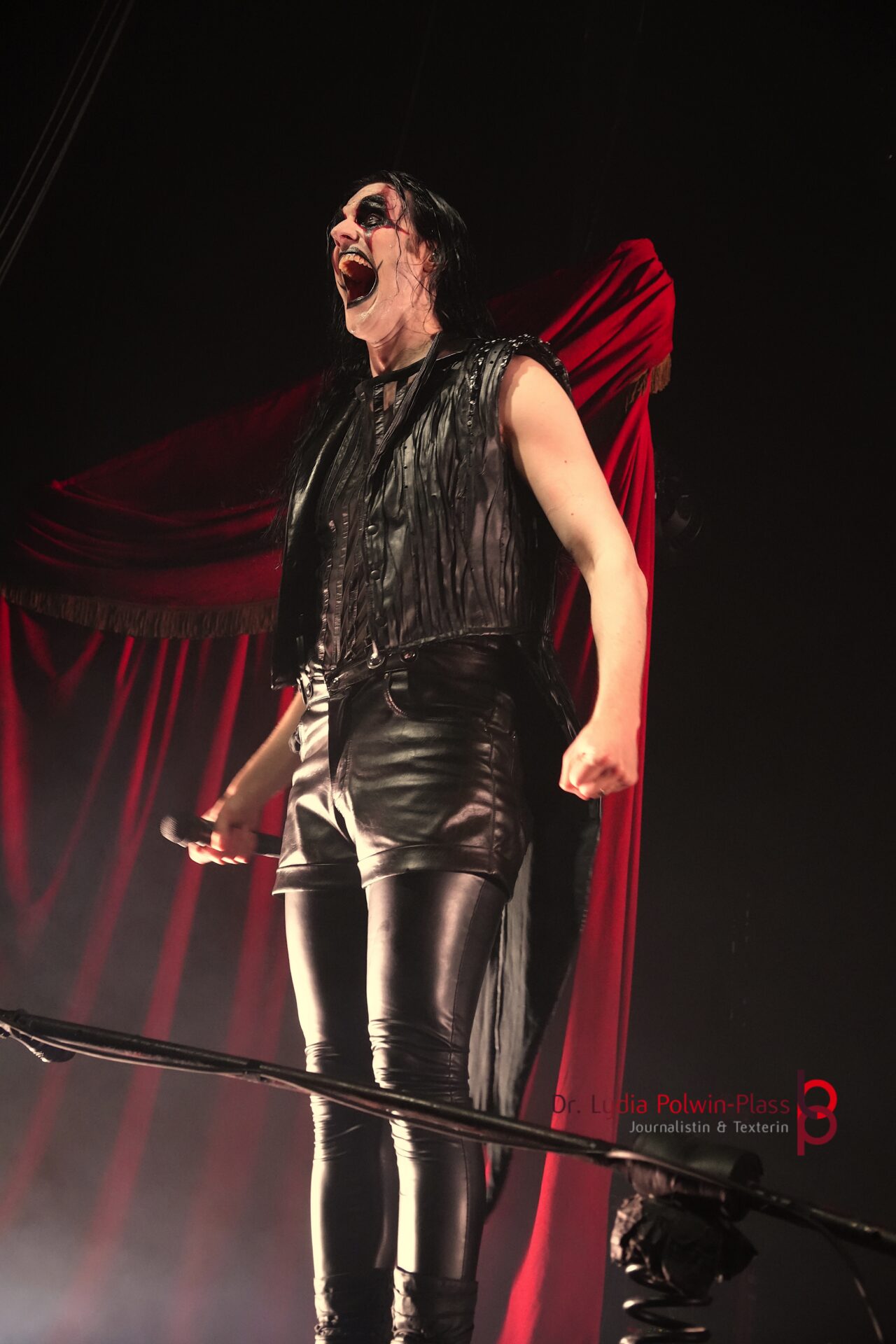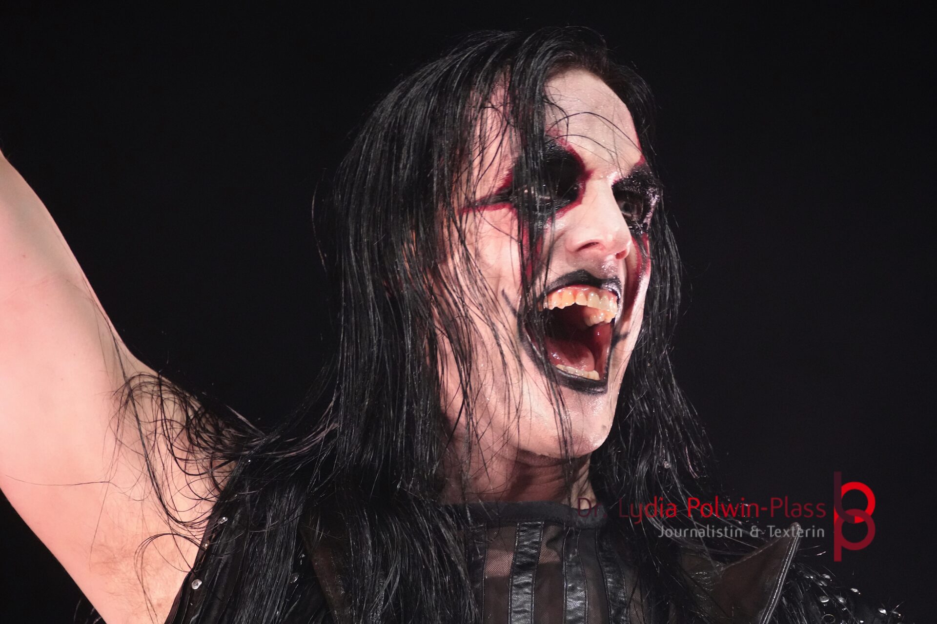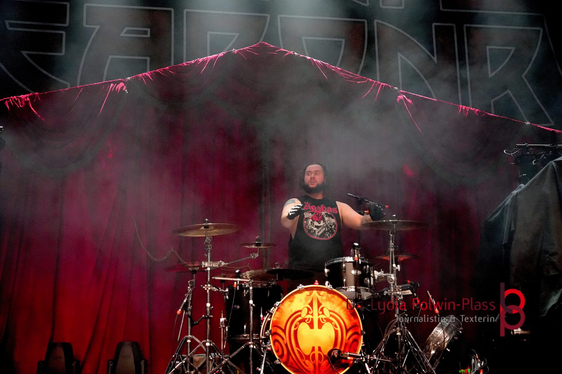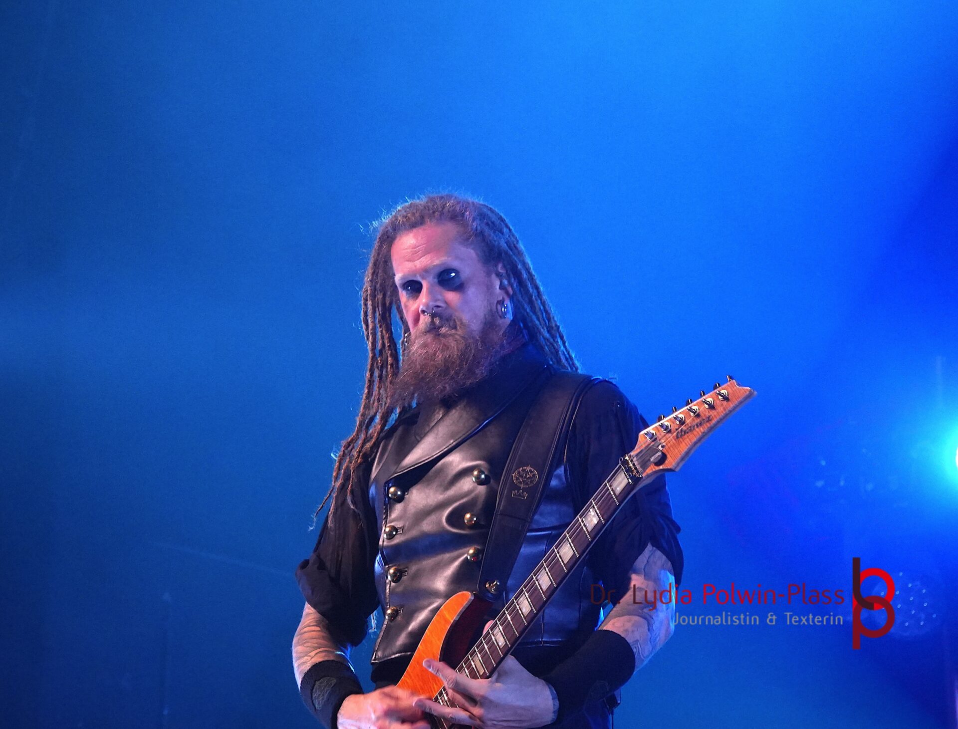 Als schließlich die 2001 gegründete schwedische Band Avatar die Bühne betrat, kippte die Stimmung endgültig in ekstatische Freude. Frontmann Johannes Eckerström enterte die Bretter, die die Welt bedeuten, mit einer Präsenz, die man kaum beschreiben kann – charismatisch, exzentrisch und unglaublich entertaining. Zwischen dämonischem Grinsen, Zirkusdirektor-Gesten und eruptiven Screams führte er das Publikum durch ein Set, das gleichermaßen brutal wie melodisch war. Mit fast perfektem Deutsch, angeblich ist die Mutter aus Deutschland, aber charmantem Akzent, versteht er es , das Publikum ab der ersten Sekunde für sich zu gewinnen und bestens zu unterhalten.