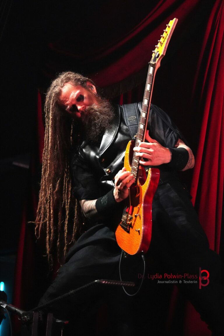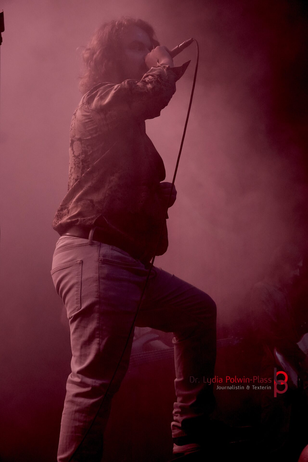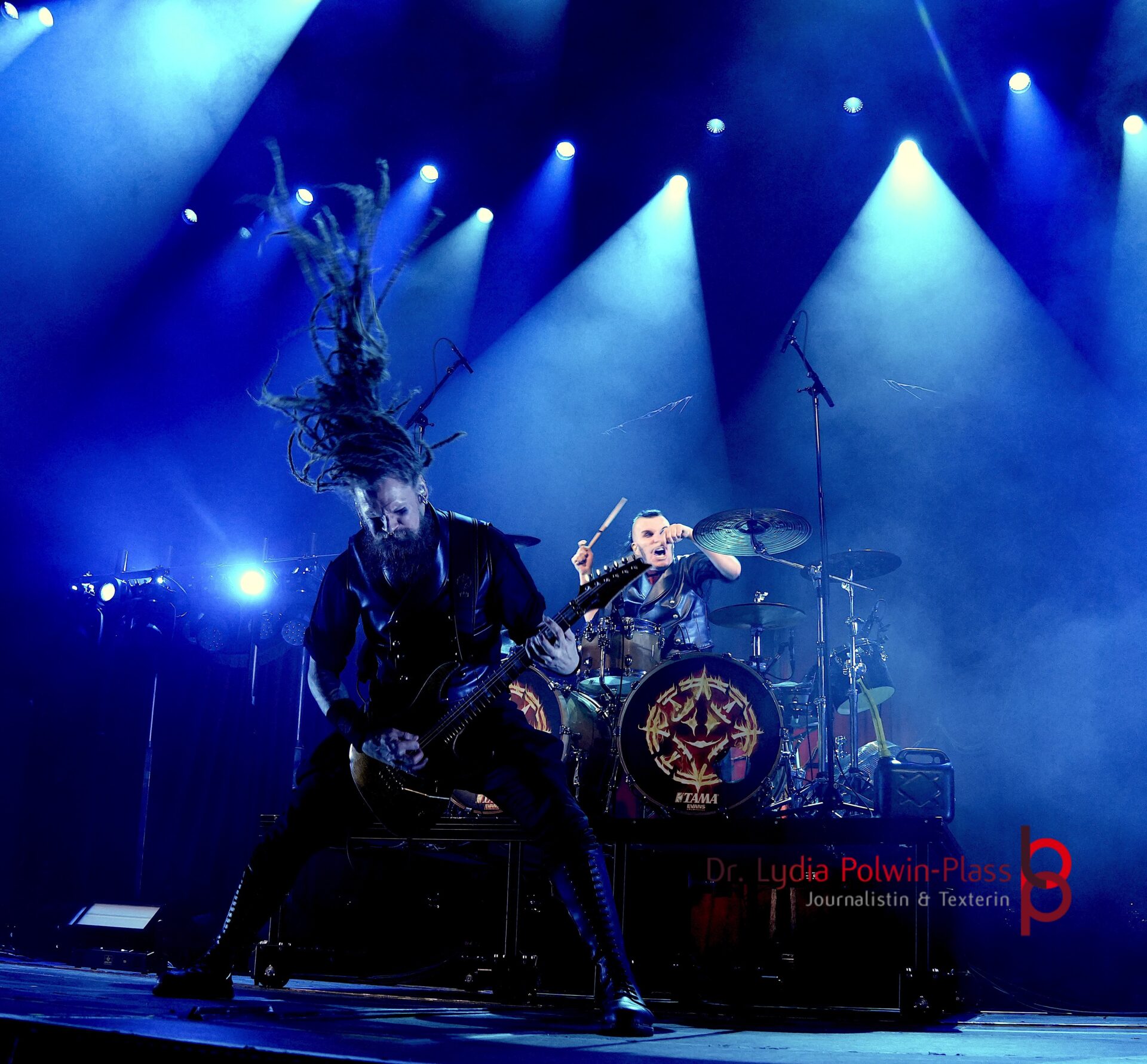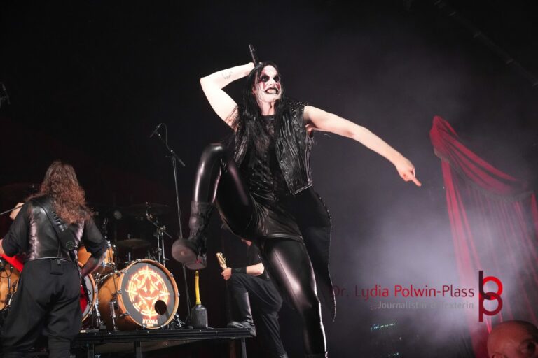 Als schließlich die 2001 gegründete schwedische Band Avatar die Bühne betrat, kippte die Stimmung endgültig in ekstatische Freude. Frontmann Johannes Eckerström enterte die Bretter, die die Welt bedeuten, mit einer Präsenz, die man kaum beschreiben kann – charismatisch, exzentrisch und unglaublich entertaining. Zwischen dämonischem Grinsen, Zirkusdirektor-Gesten und eruptiven Screams führte er das Publikum durch ein Set, das gleichermaßen brutal wie melodisch war. Mit fast perfektem Deutsch, angeblich ist die Mutter aus Deutschland, aber charmantem Akzent, versteht er es , das Publikum ab der ersten Sekunde für sich zu gewinnen und bestens zu unterhalten.