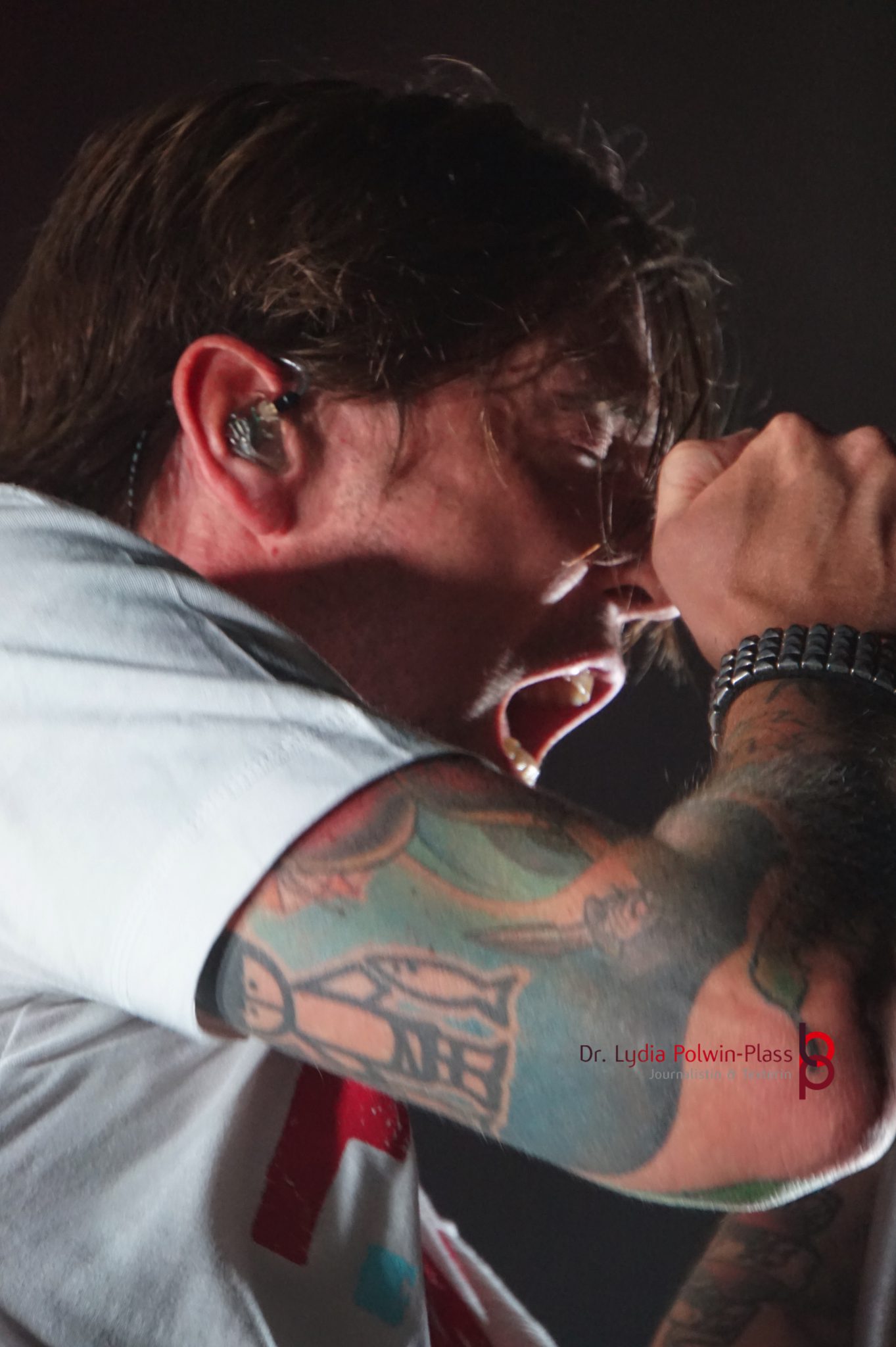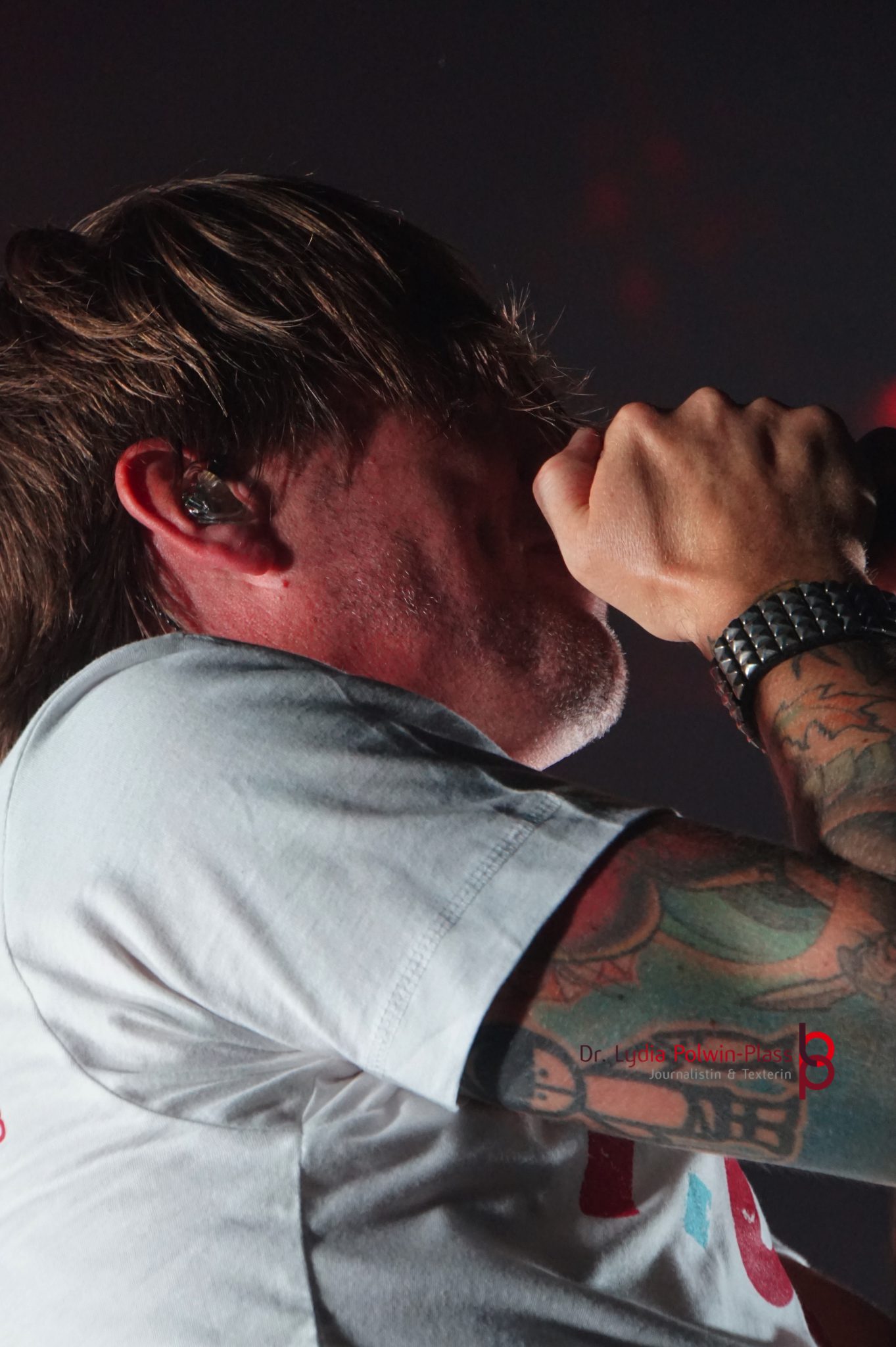 Mit Worten wie „wir müssen über den Tellerrand schauen, die Welt ist so viel größer als nur wir selbst und unsere eigener Bereich“ und „helfen ist so einfach, man muss es einfach nur tun!“ und „die „pieces of shit“ wie Trump und co“ wollen uns entzweien (want to devide us ), das dürfen wir nicht zulassen, wir müssen zusammen halten“ verabschiedete sich der Sänger der Band Billy Talent, Benjamin Kowalewicz, nach einem mehr als erfolgreichen Abend, vom Publikum.
