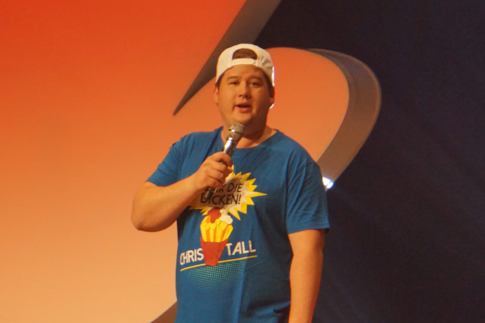 Chris Tall kritisiert gerne Eltern, die versuchen cool zu sein indem sie sich Floskeln aus der Teeniesprache bedienen. „Auch Eltern können cool sein, wenn sie sich dem Alter entsprechend benehmen.“ Dass gerade die Generation seiner Eltern diejenige ist, der er all die geilen Endgeräte, Apps und anderen technischen Errungenschaften verdankt, wird in Chris Show kurzerhand mal ignoriert. Ist auch ok, denn so manche Großeltern und ich betone Großeltern erkennt man tatsächlich wieder in den witzigen und pointierten Gags des selbst erst 26 Jahre alten Comedian.
