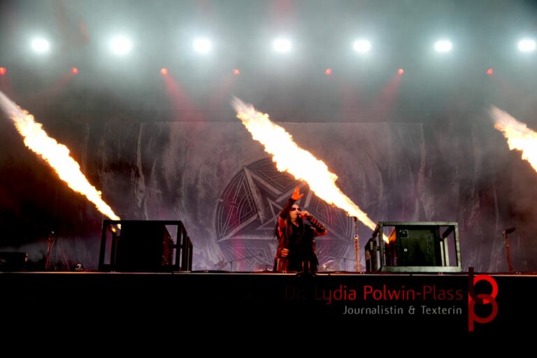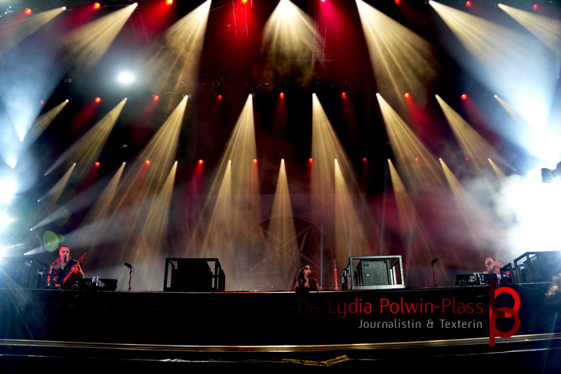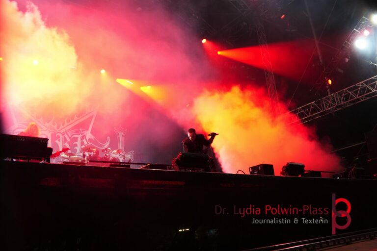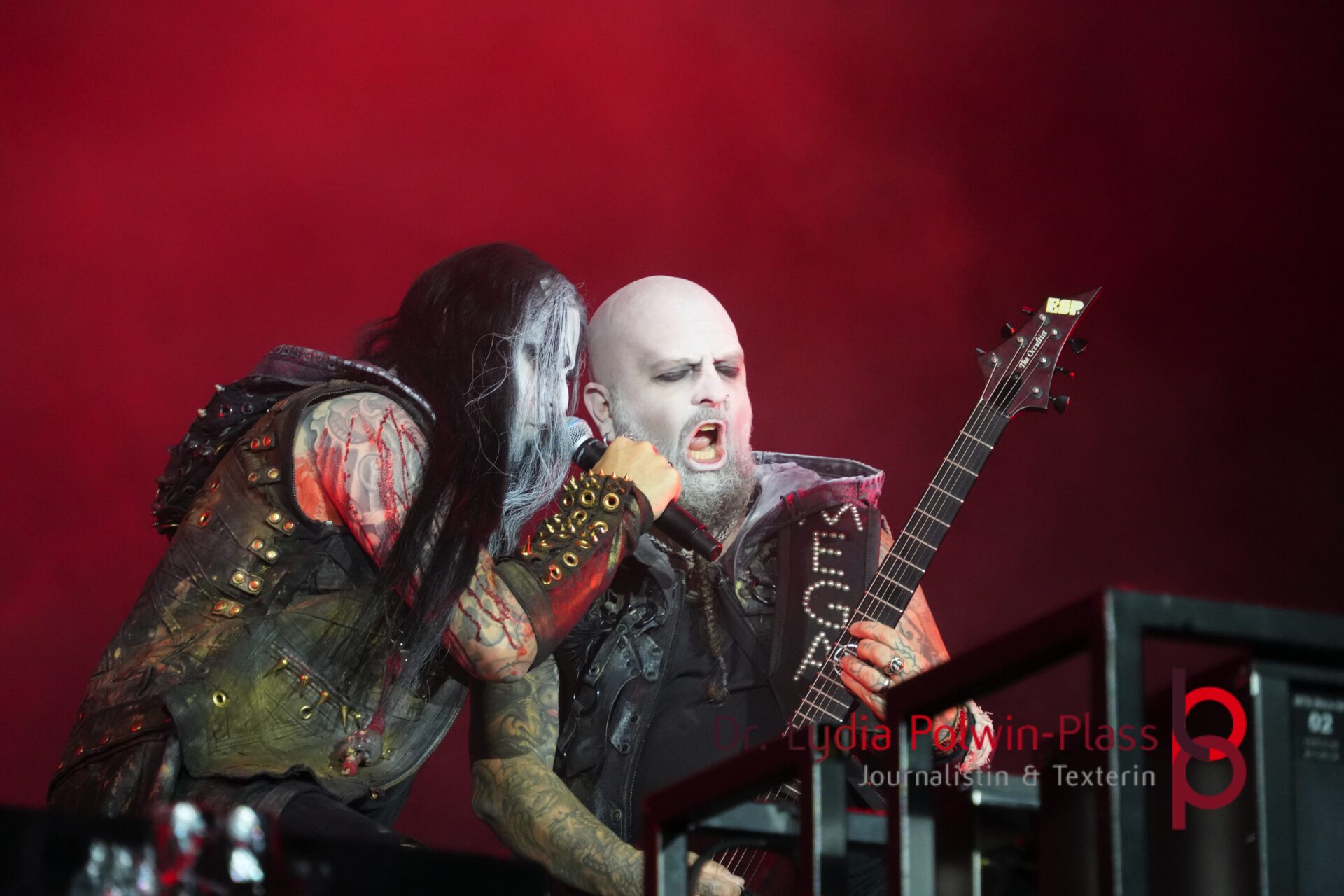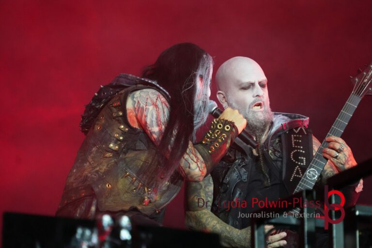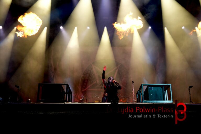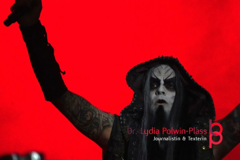 Ui, und dann wurde es düster mit Dimmu Borgir. Wow, die Lichtshow war sensationell und die Stimmung, die die Band verbreitete ziemlich cool. Auch die Outfits sind ziemlich beeindruckend.