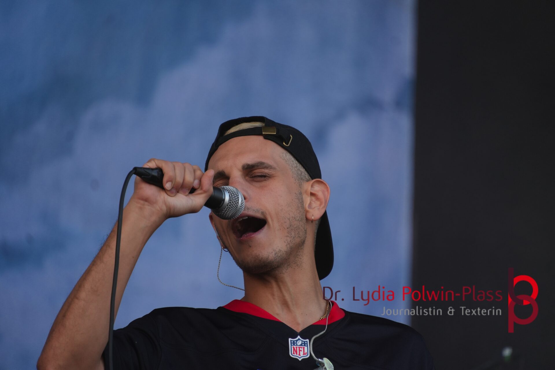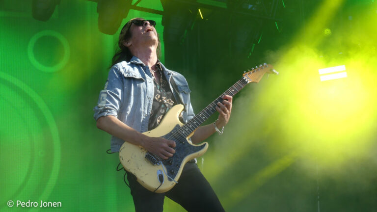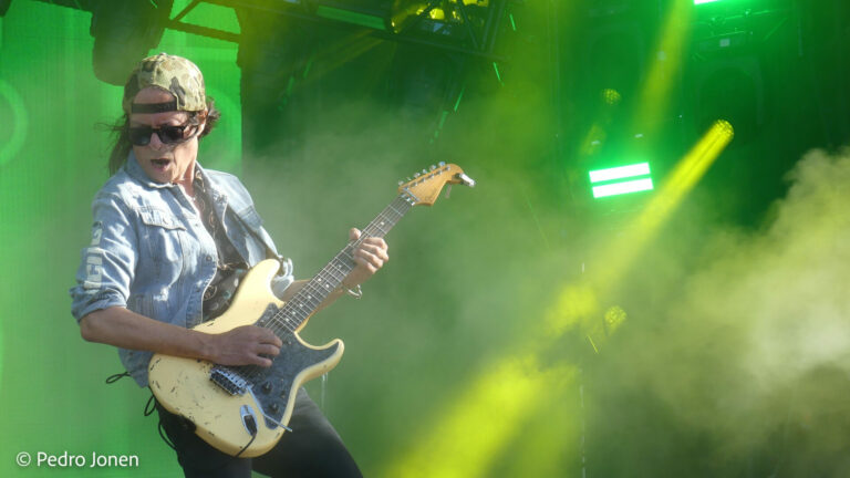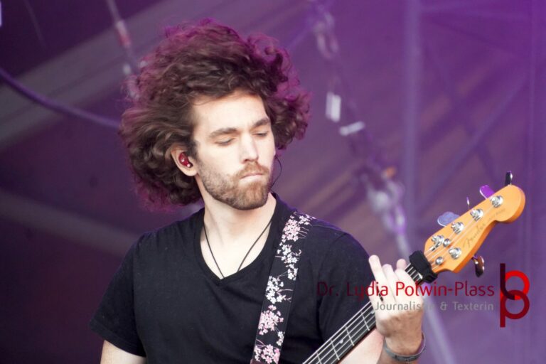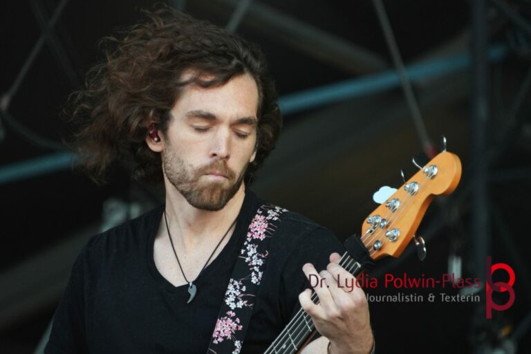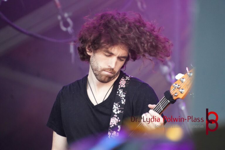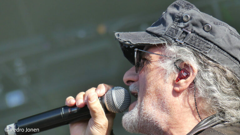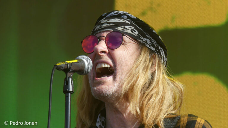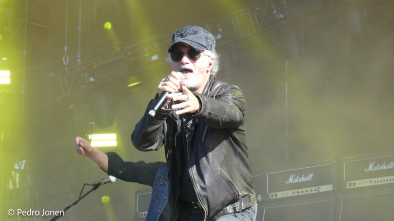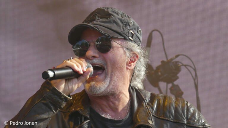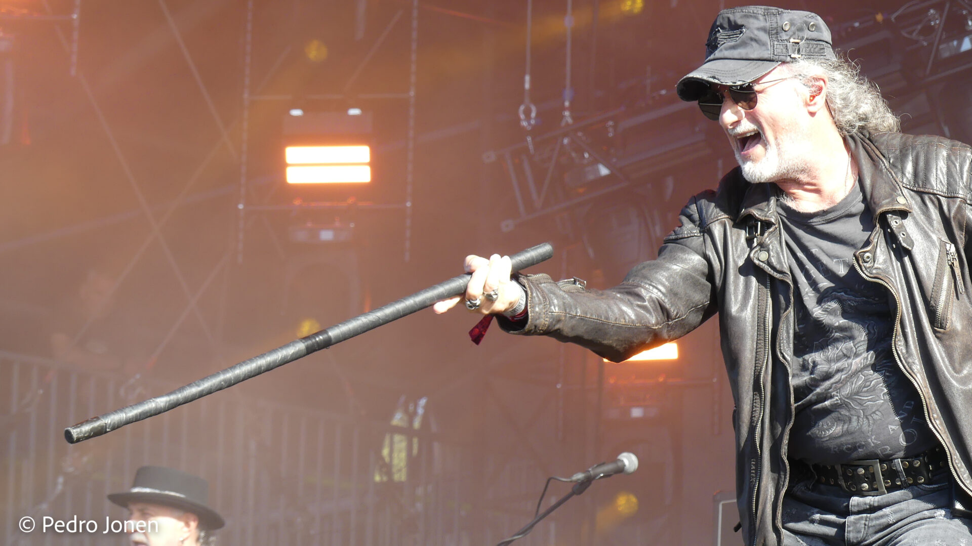 Ein bisschen Pause war nun wirklich angebracht, also setzten wir uns zwischen Harder und Louder auf eine Bank und schauten uns Bad Loverz auf Screen an. Ich sagte zu Pedro: „der Typ in den rosa 80er Jahre Klamotten mit Kreuzschnürung am Hintern sieht doch aus wie der Sänger von Saltatio Mortis. Halt, das ist ja Alea!“ Ich wusste gar nicht, dass er neben Saltatio noch eine Spaßband betreibt. Und das mit Erfolg, die lustigen Rockcovers mit Dudelsack und anderen mittelalterlichen Instrumenten in witzigen 80er Jahren Outfits gespielt, kamen unglaublich gut an.