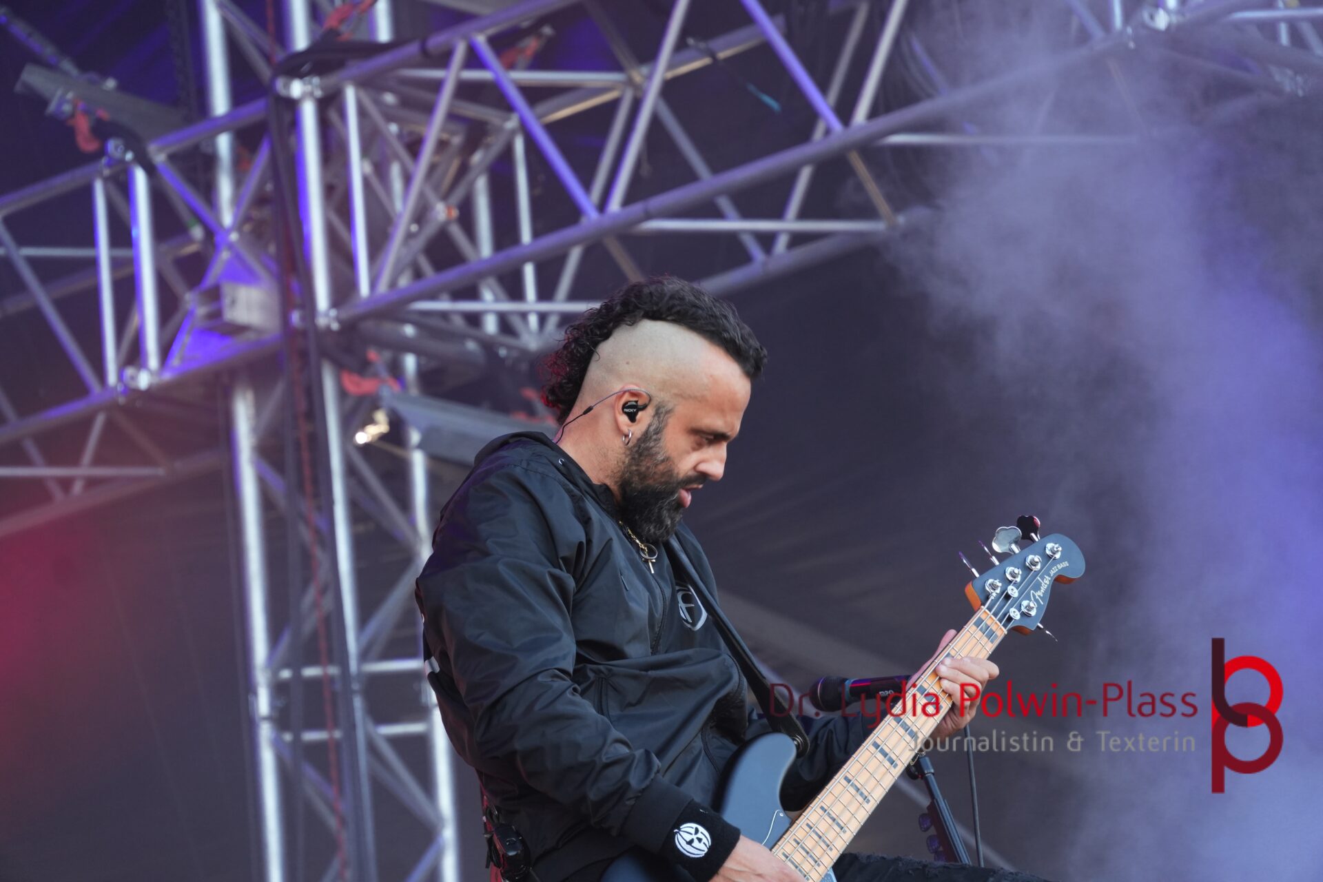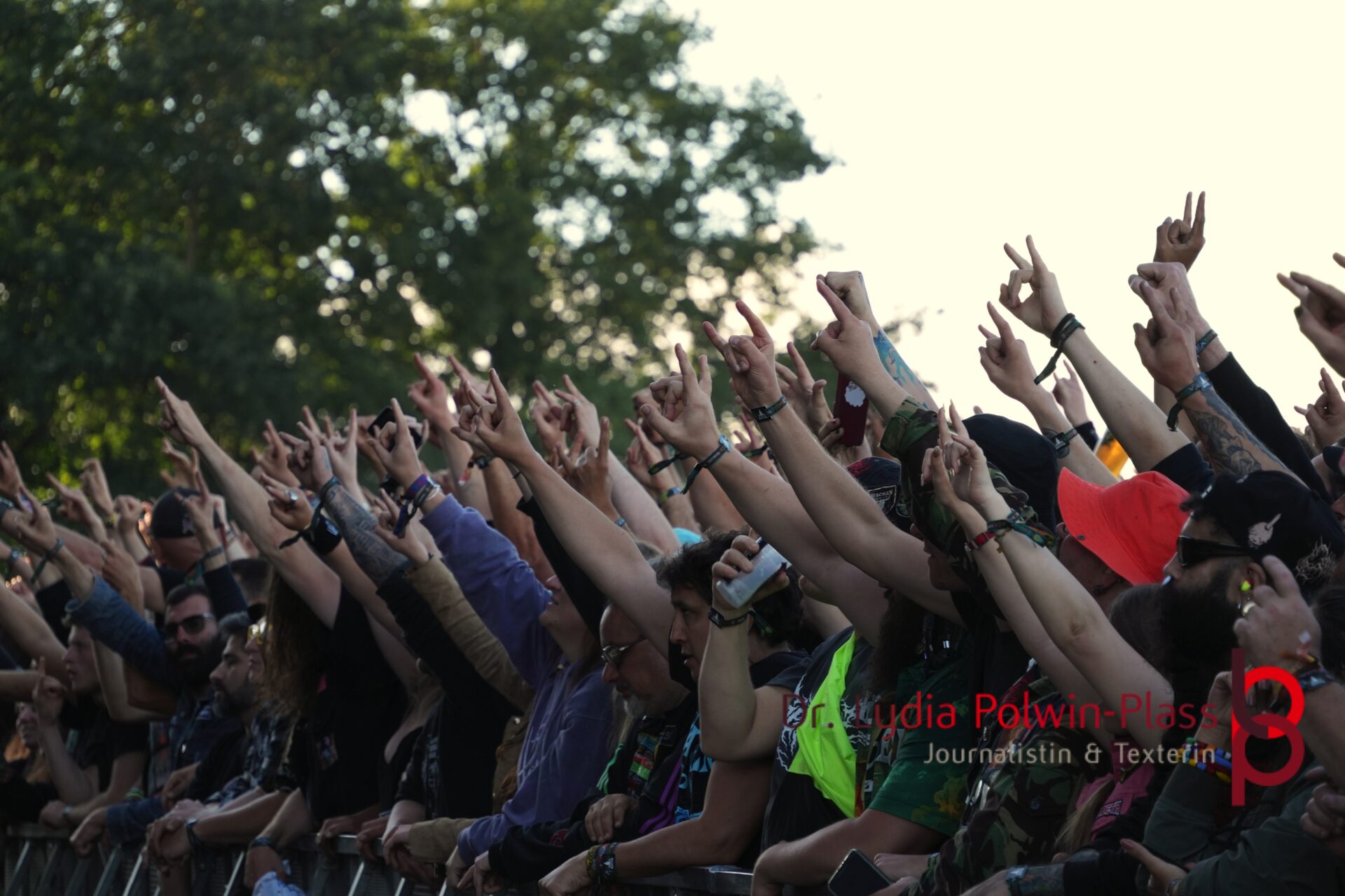 Das Programm an diesem Tag war einfach nur großartig. Wir starteten gleich um 12:30 Uhr mit der Band Dominum. Weiter ging es dann mit der jungen Metalcore Band Landmvrks, die sowas von ablieferte. Dann schnell rüber durch den Schlamm zu Peyton Perrish. Danach mal zwischendurch etwas Klassik-Rock mit Krokus und Dirkschneider, der als Special Guest mit Doro auffuhr. Udo feierte sein 40-jähriges Bühnenjubiläum und das stark wie eh und je. Zum Graben kam ich etwas zu spät wegen Fear Factory auf der Louder, die ich unbedingt sehen wollte. Und das zahlte sich auch wirklich sehr aus. Der Gig war der Hammer!