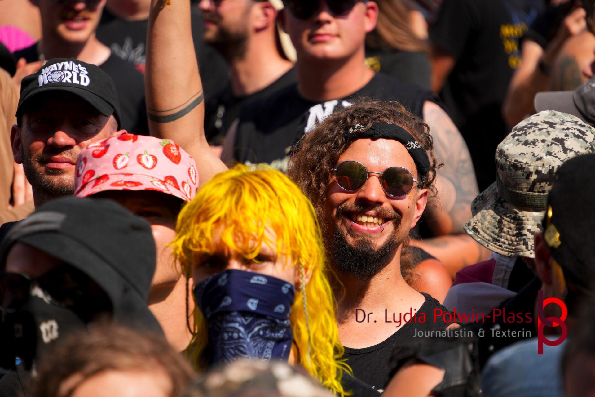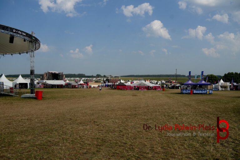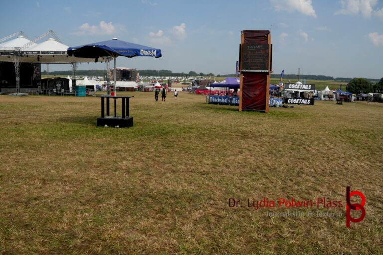 Da es durch die Affenhitze, die sich eigentlich über das ganze Festival zog, unter der Zeltplane des Partyzeltes ziemlich warm wurde, kamen die meisten, die normalerweise zur großen Gruppe der Heilbronner, wie wir sie nennen, gehörten, immer wieder zu uns unter den Pavillon, der etwas kühler war als das Partyzelt. Wir genossen die Nähe unserer Freunde sehr.
