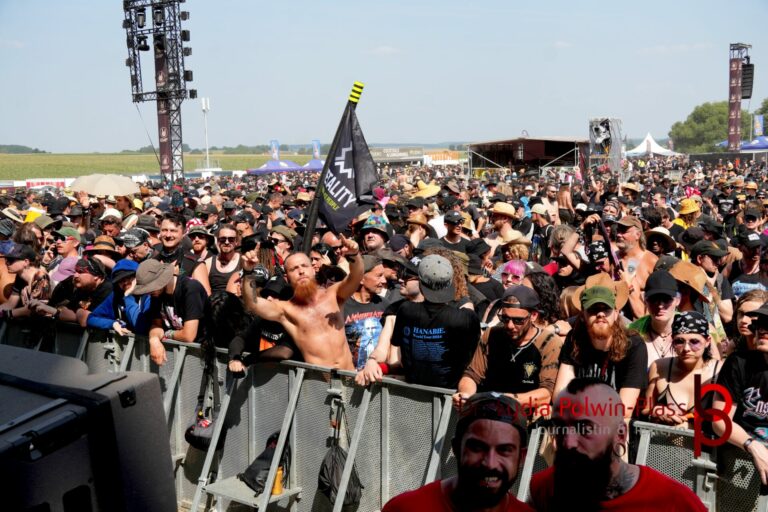Aktuell stecke ich zugegebenermaßen im Stau auf der Rückreise und spreche meinen Beitrag für den ersten Tag auf Band, um nicht einzuschlafen, und den Beitrag schon einen Tag nach dem Festival veröffentlichen zu können. Das funktioniert hervorragend. Am letzten Abend wurde es natürlich spät und ich hatte nur wenig Schlaf. Bei uns ist es Tradition, dass wir uns die letzte Band auf der T-Stage gemeinsam anhören, bevor wir dann im Partyzelt ein letztes Bierchen oder Likörchen gemeinsam zwitschern. Gerade die letzte Band verbreitet meist eine unbeschreiblich angenehme Stimmung, auch wenn ein bisschen Wehmut wegen der bevorstehenden Abreise mitwirkt. Doch dazu später im Nachbericht vom Samstag in ein paar Tagen hier auf METALOGY.