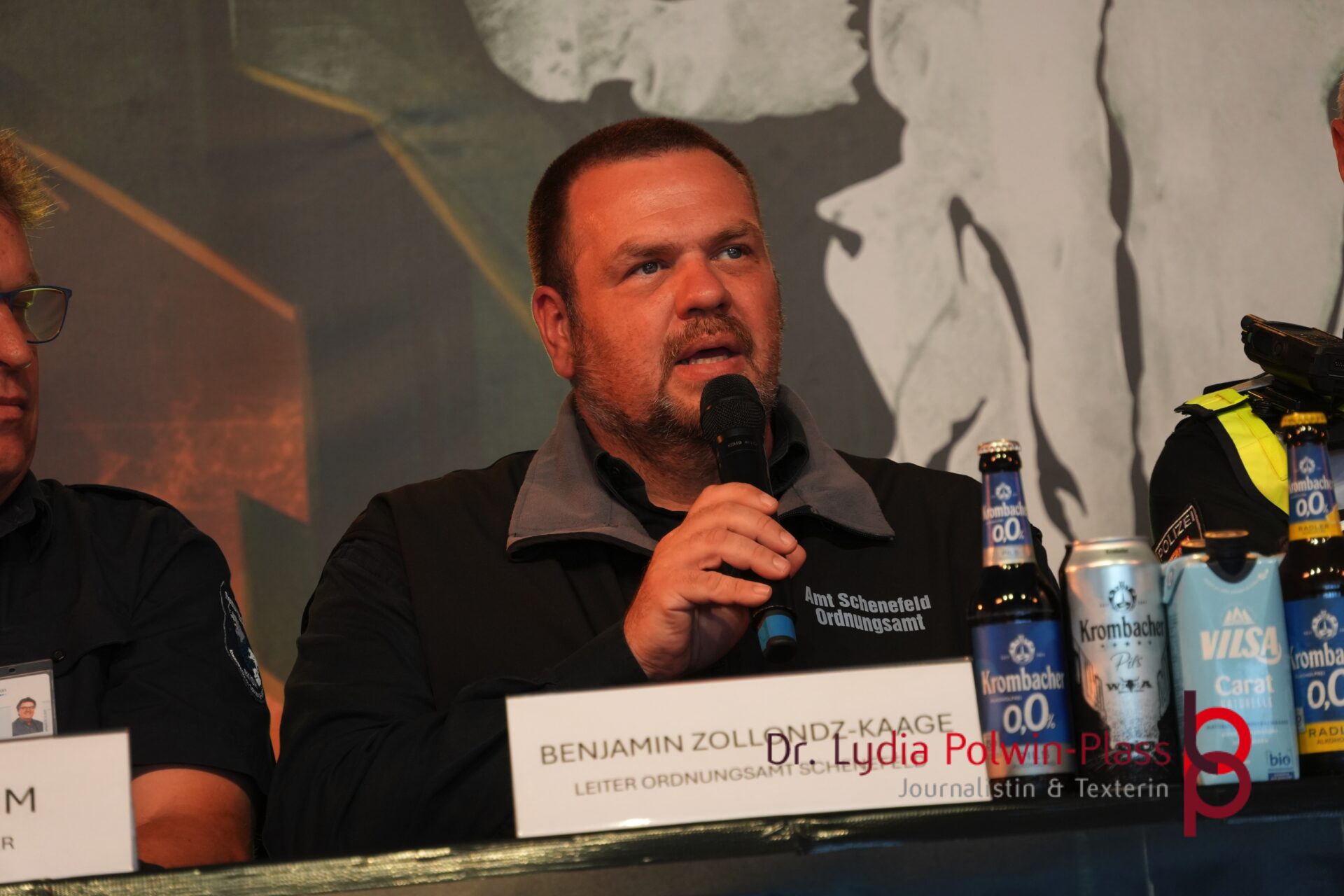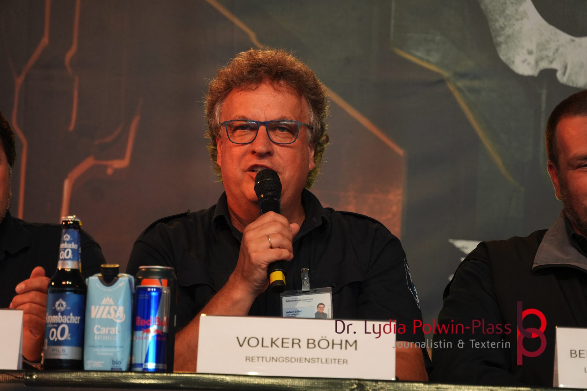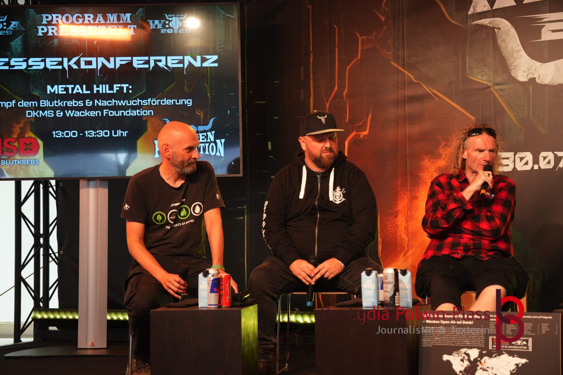 Die Rettungsdienste berichteten, dass sie frühzeitig auf Fahrzeuge mit Allradantrieb umgestellt hatten. Im Einsatz waren knapp 1.000 Helfer, darunter ca. 700 ehrenamtliche Mitarbeiter. Sie zeigten sich glücklich darüber, dass die Zahl der Krankentransporte zum Zeitpunkt der Pressekonferenz mit etwa 150 deutlich unter dem Schnitt der Vorjahre von 180-200 lag. Dank galt vor allem den Fans und dem Klinikum Itzehoe. Auch die Feuerwehr zeigte sich angesichts eines ruhigen Festivals zufrieden mit den Worten „Matsch brennt nicht“ – dafür aber ein PKW, was jedoch schnell und professionell unter Kontrolle gebracht wurde. Auch konnten in einem außergewöhnlichen Einsatz zwei entlaufene Kühe aus dem Umland eingefangen und an die Landwirte übergeben werden. Ebenso blickte die Polizeiführung auf eine ruhige Woche zurück, in der die Zahl von relevanten Straftaten um 21 Prozent auf nur 68 Fälle sank – eine erfreuliche Zahl für „die drittgrößte Stadt Schleswig-Holsteins“, zu der Wacken während des Festivals anwächst.