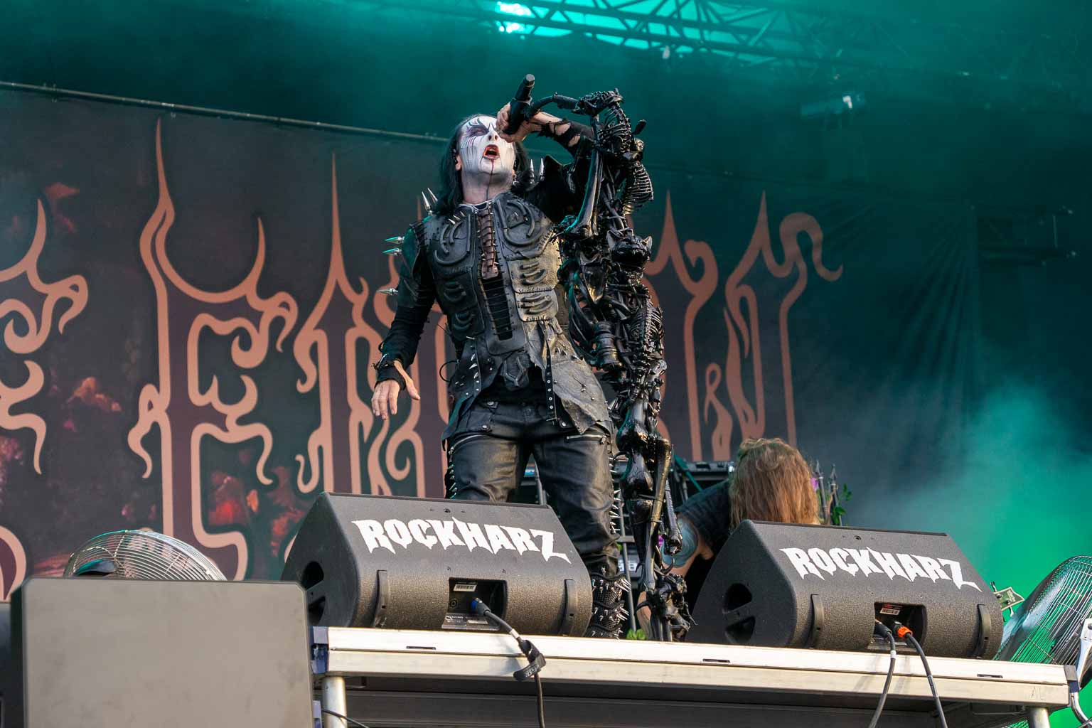 Britisch bleibt es auch mit CRADLE OF FILTH. Muss man viele Worte verlieren, wenn Dani Filth mit gewohnt hoher, schriller Stimme zu einer infernalischen Mischung aus Dark, Symphonic Black und Extreme Metal aufruft? Bemerkenswerterweise hat die Band die jüngsten Mitgliederwechsel ohne jegliche Qualitätsverluste überstanden, im Gegenteil scheint sie mehr den je eine Einheit zu sein, wie die Vermählung von Marek und Zoe beweist.