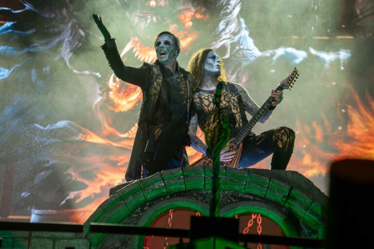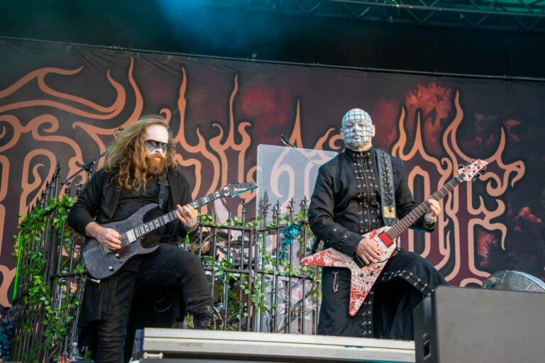 Alte Bekannte treffen wir auf ihrem Lieblingsfestival als MONO INC. zu bester Uhrzeit die Bühne betreten. Es wird ergo gothisch, melodisch und zeitweise sicherlich auch poppiger als auf Metal Festivals üblich. Aber das ist genau das, was die eingeschworene, mehr als zahlreiche Fangemeinde um die Ohren gehauen bekommen möchte. Das Infield ist übervoll bis an die Fressmeile und es soll noch voller werden…