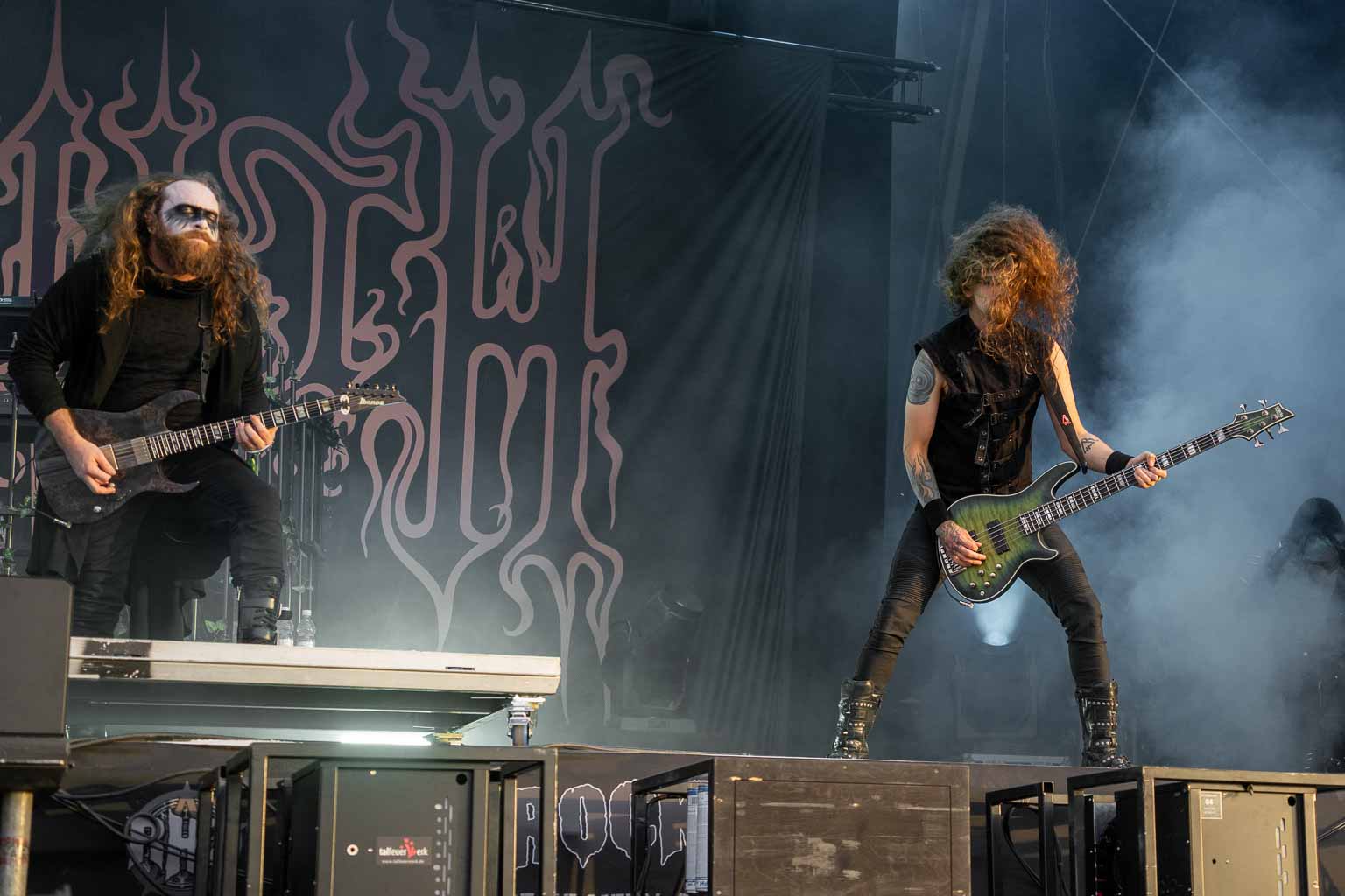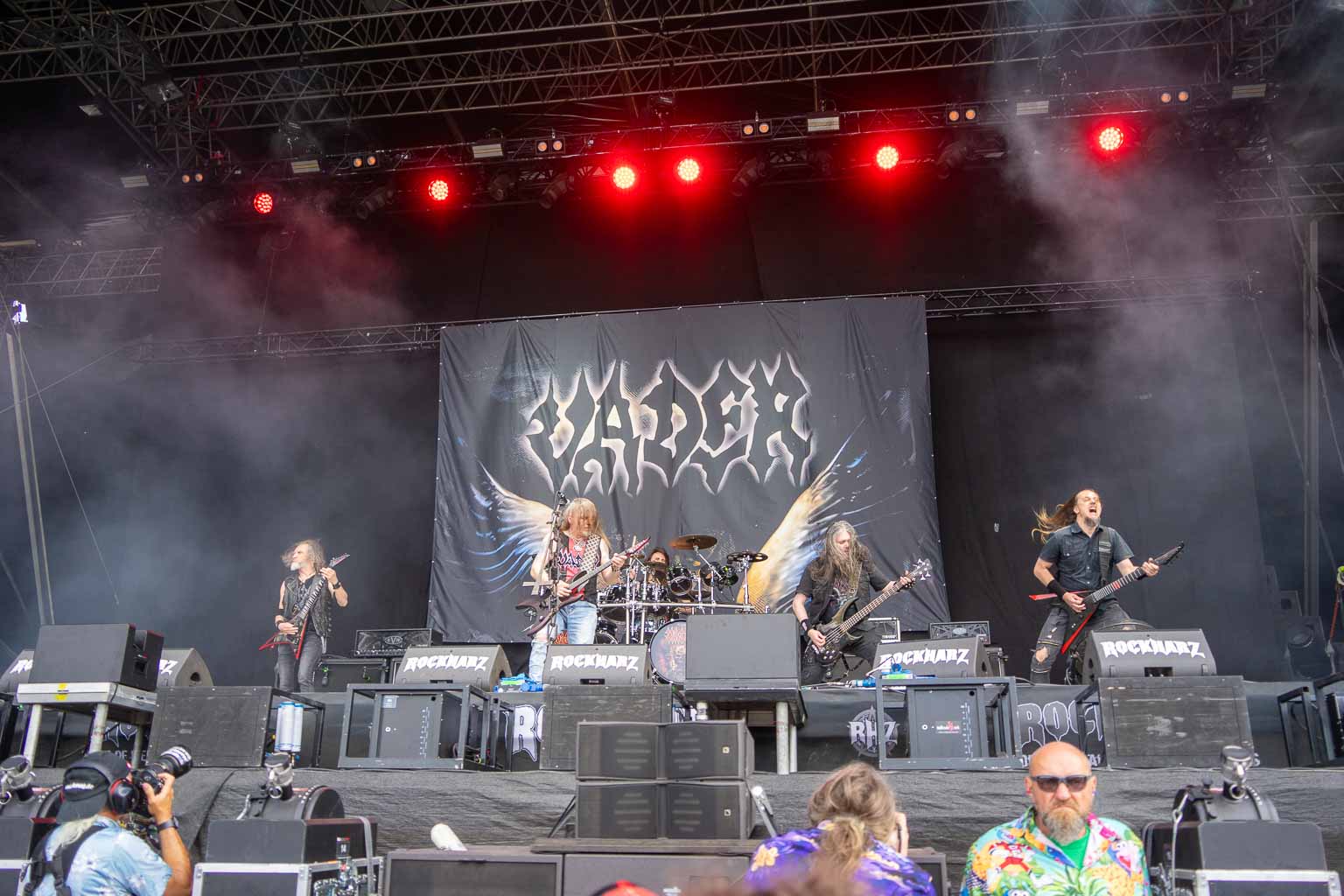 Polnisch wird es zur Kaffee- und Kuchenzeit mit VADER. Sie servieren uns feinsten Death Metal mit drei Leadgitarren (!) statt Latte Macchiato und Schwarzwälder Kirschtorte. Die Gewürzmischung passt und ist perfekt auf das euphorische Publikum abgestimmt.