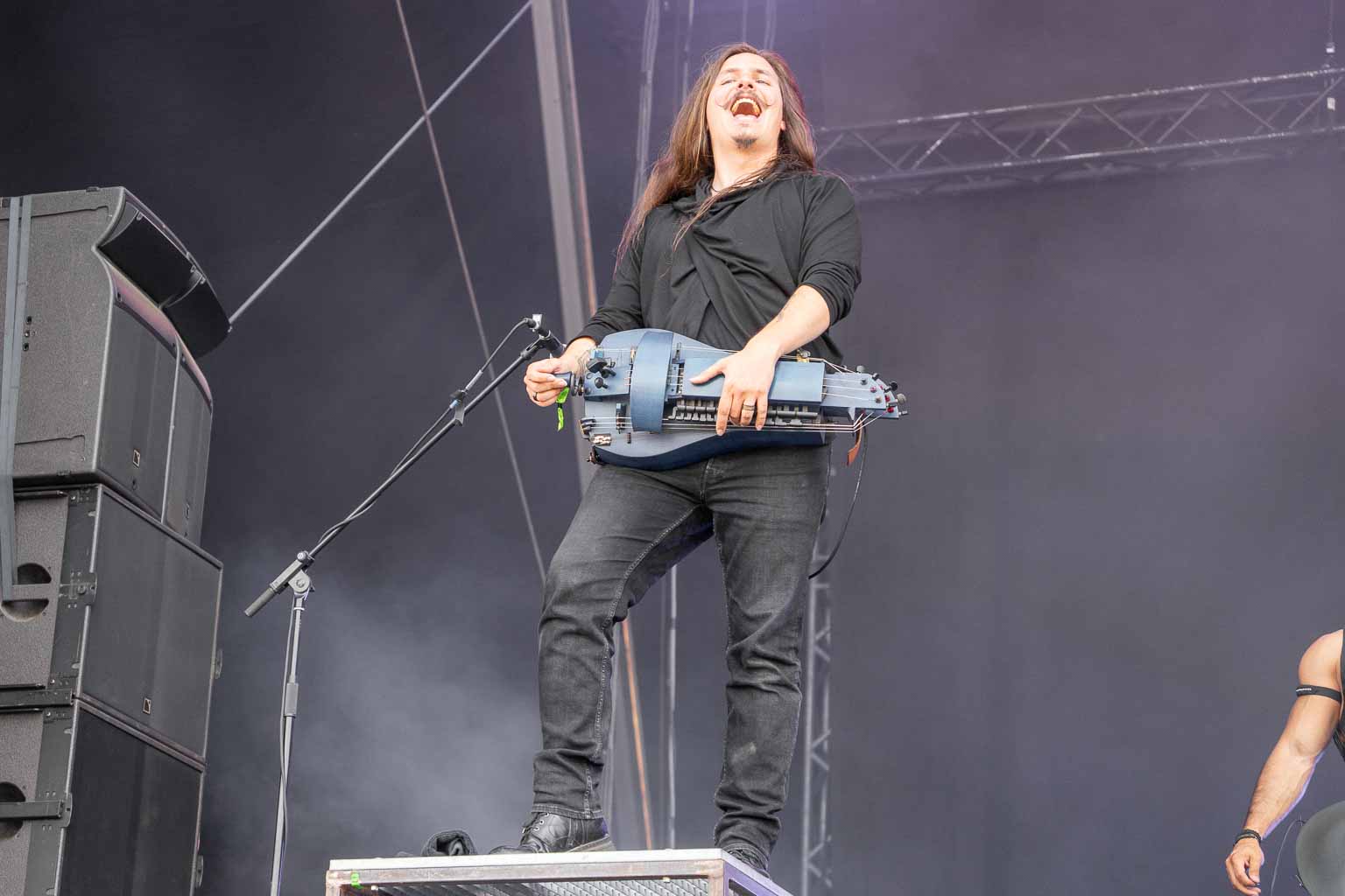 Abrupt ist der Wechsel zu GLORYHAMMER. Nun regiert eine Phantasiewelt nicht nur die Bühne, sondern auch das saurier- und einhörnerlastige Publikum. Das ist wirklicher Fantasy-Power Metal bester britischer Qualität.