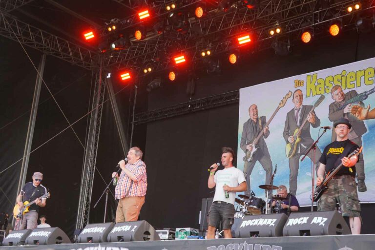 Wir bleiben im Ruhrgebiet, es geht nach Bochum zu DIE KASSIERER. Das ist sicher die kontroverseste Band des Festivals. Immerhin spielt sie eine entschärfte Primitiv-Punk-Show und das ist gut so und völlig ausreichend.