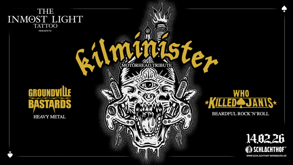 Es war eine jener schönen Traditionen, die über die Pandemie verloren gegangen war. Vor genau einem Jahr konnten wir ihre Wiederauferstehung feiern. Und auch dies Jahr laden The Inmost Light – Tattoos und Kunst mitten aus Wiesbaden – erneut ein zu einem herrlichen Metal-, Punk-, Rock’n’Roll-Stelldichein! Heute mit Kilminister aus Halle, die seit 2010 mit einer heiligen Mission unterwegs sind: Nämlich die Musik und das Erbe von Motörhead und die Kraft des Lemmy‘schen Rock’n‘Rolls unter die Leute zu bringen. Und sie kommen verdammt nah ran ans berühmte Original! Übrigens auch optisch, denn Bassist Sven Büttner sieht Motörhead-Chef Kilmister frappierend ähnlich. Dazu gesellen sich erneut Groundville Bastards, die so ziemlich allem zwischen Black Sabbath, Judas Priest, Dio, Iron Maiden, Metallica und Motörhead ein musikalisches Denkmal setzen, sowie die Punk’n’Roller von Who Killed Janis, das „klangliche Äquivalent von Elvis, Johnny Cash, The Ramones und Social Distortion, welches auf dem Rücksitz eines Cadillacs gestopft wurde und „Grease“ in einem schäbigen Drive In sah“, wie an anderer Stelle zu lesen war.