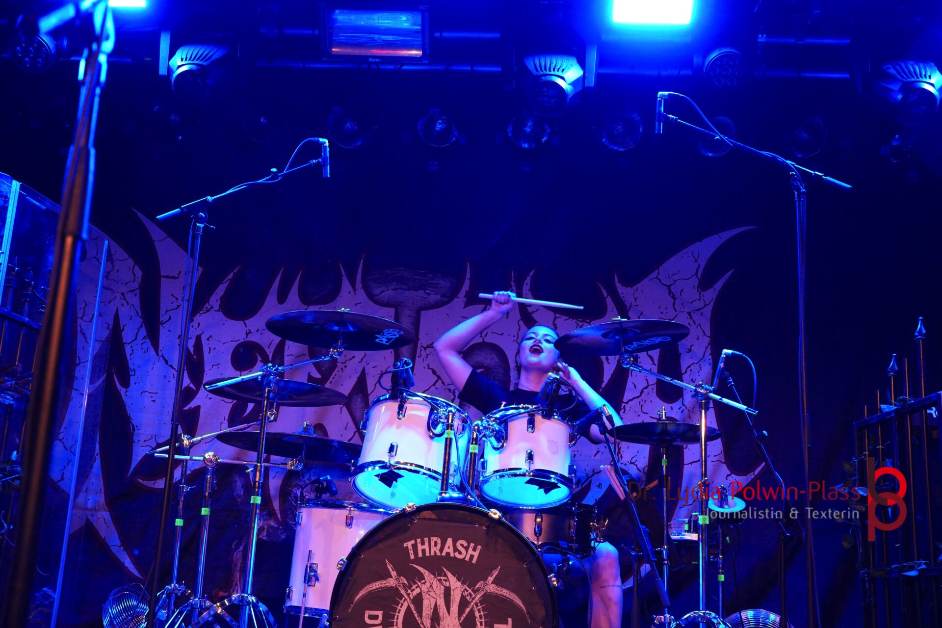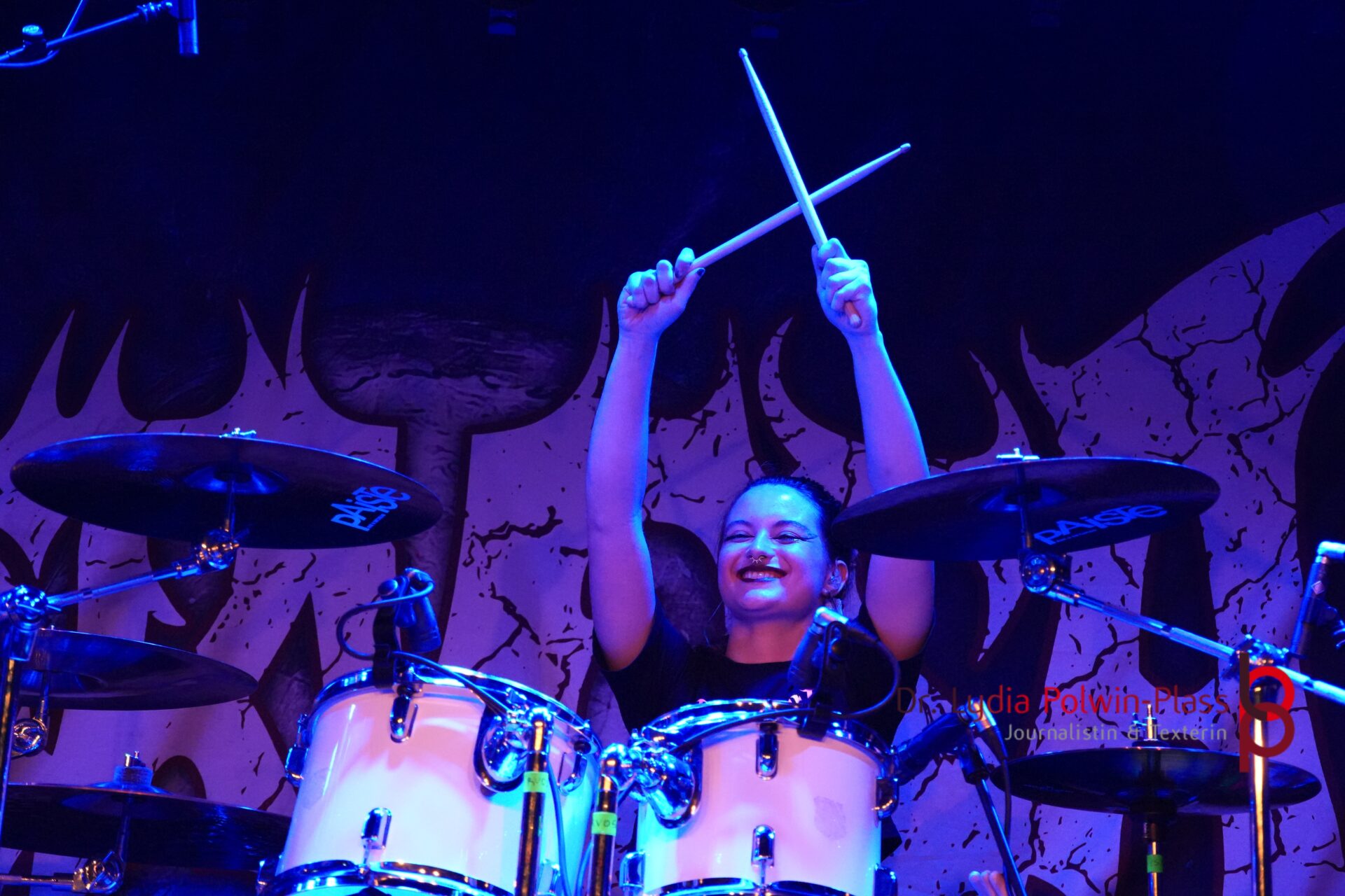 Über die kraftvolle Musik der englischen Extreme-Metal-Band Cradle of Filth muss man nicht viel sagen. Denn ihre facettenreichen Sounds und raffinierten Gesangs- bzw. Stimmvariationen sind in der weltweiten Szene bekannt und seit vielen Jahren hoch geschätzt. Seit ich vor Jahren das erste Mal Cradle of Filth live gesehen habe, zählen die Gigs dieser Band rund um Gesangswunder Daniel Lloyd Davey alias Dani Filth für mich zu den absoluten Pflichtterminen. Vor allem ihr Gig auf dem Wacken Open Air haute mich schlichtweg um. Und auch im Colos-Saal Aschaffenburg überzeugten die Briten auf ganzer Linie. Ähnlich geht es mir mit der brasilianischen Thrash-Metal-Band aus NERVOSA. Die Band mit ihrer unfassbar charismatischen Frontfrau und Metalröhre Prika Amaral hat mich vom ersten Ton an gefesselt und zu einer treuen Besucherin ihrer Gigs gemacht. Die energetischen Auftritte der Band sind immer wieder ein unvergessliches Erlebnis. So auch am Freitag.