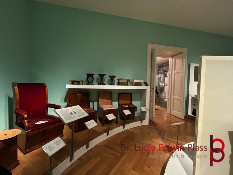 Besucht haben wir 6 Museen: Das beeindruckende Möbelmuseum, wo man unter anderem beim Vergolden, Politieren und Polstern von Möbeln zusehen konnte. Alles Handwerkskünste, die heute leider kaum mehr gelehrt werden. Neben Möbeln, die als Kulisse für die Sissi-Filme und andere alte Streifen dienten, kann man dort Möbel aus vergangene Zeiten bewundern. Das eine oder andere Stück erinnerte mich an die Wohnungseinrichtungen von längst verstorbenen Tanten aus Wien.