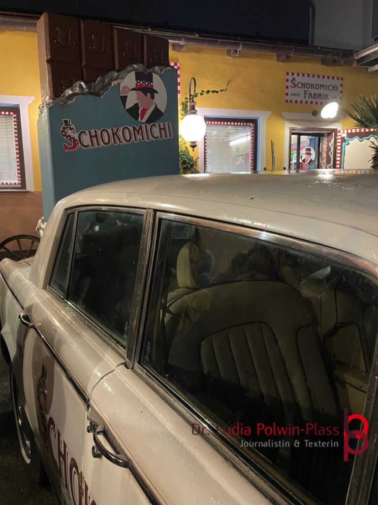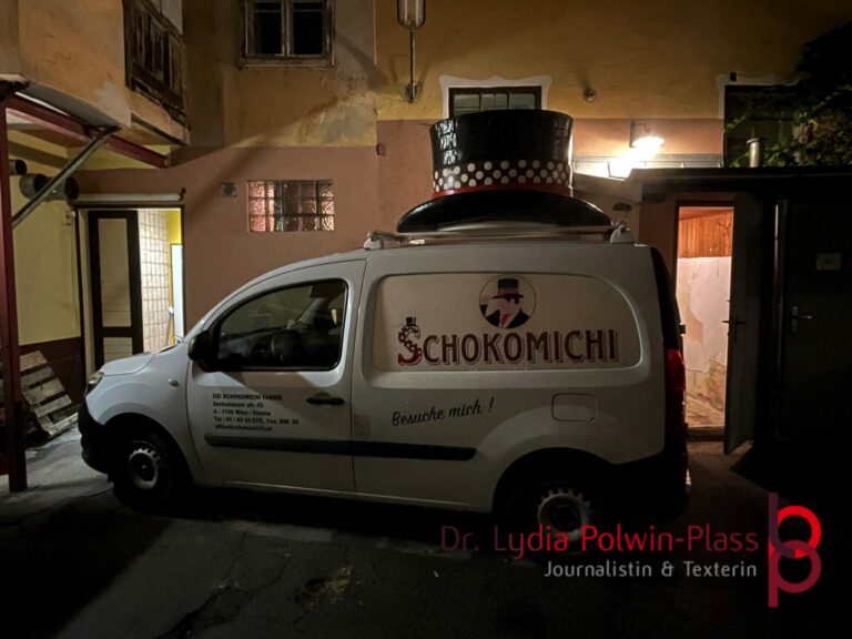 Vor dem Eingang der urigen Schokomanufaktur des Wiener Originals Schokomichi mussten wir eine halbe Stunde warten, leider hatten wir deshalb am Ende für das Technikmuseum nur noch 15 Minuten übrig und wissen nun, womit wir nächstes Jahr den Abend starten werden.