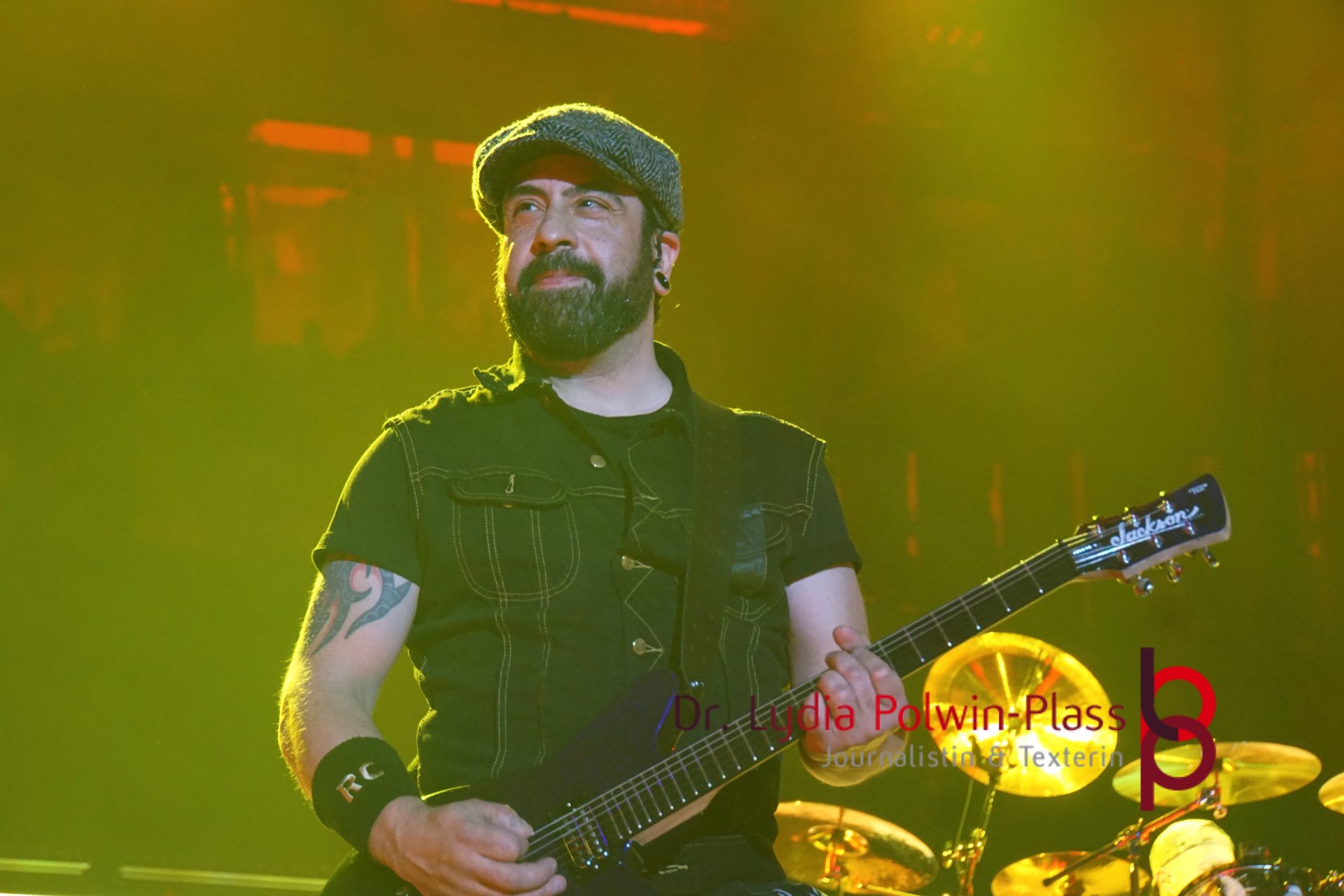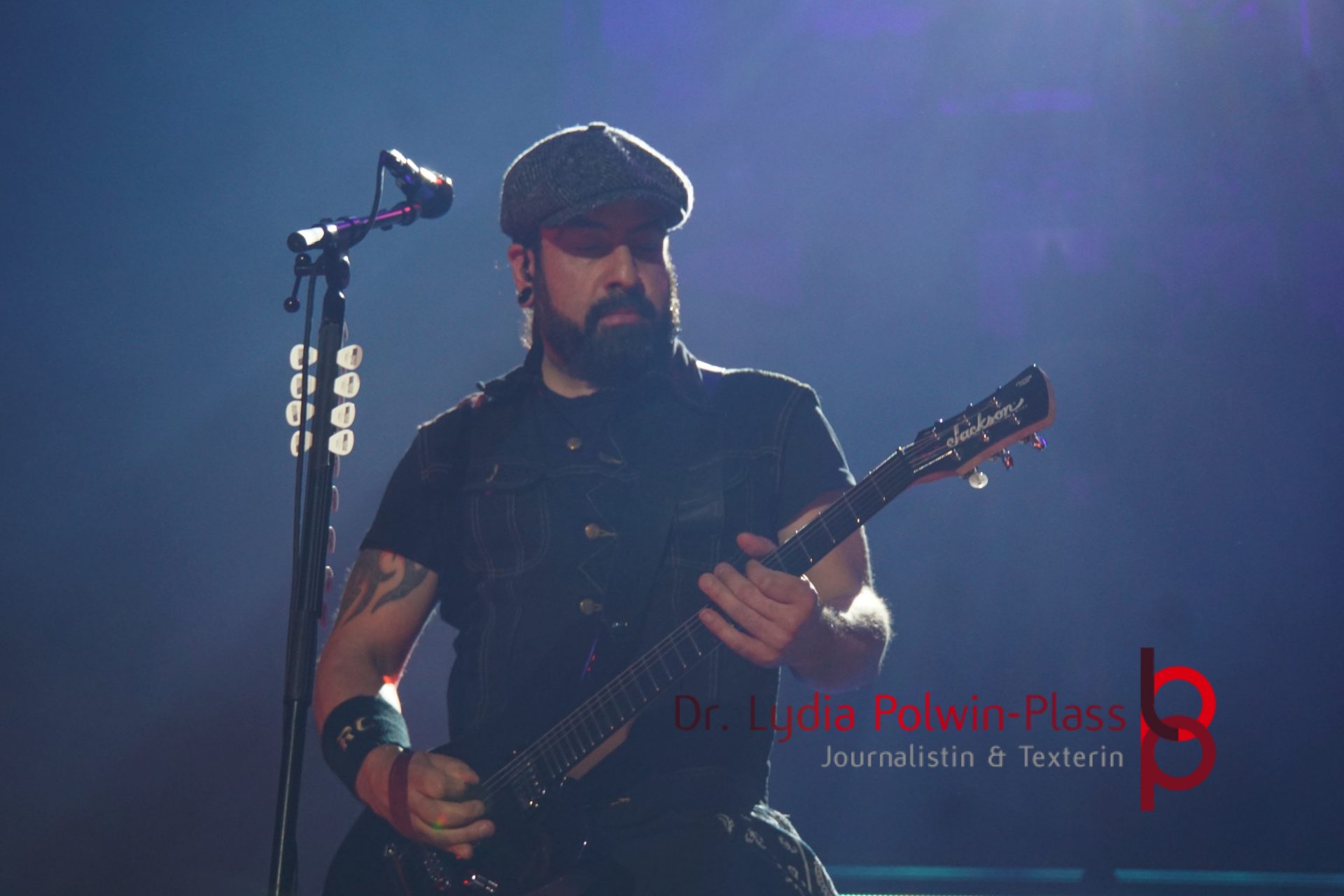 Die Frankfurter Festhalle war zum Bersten mit Fans der Ausnahmerocker Volbeat gefüllt. Aus ihrem großen Repertoire spielte die Band ein tolles Set aus alten und neuen Nummern. Unter der Fotostrecke könnt ihr euch die Setlist ansehen. Stimmungsvoll startete der Abend mit Rocklegende Danko Jones. Danach wurde es ein wenig meditativer, denn Baroness spielten eine Art von Progressive/Psychedelic Rock. Als dann Volbeat auf die Bühne kamen, kochte die Stimmung förmlich über und das Publikum ließ sich von den Superhits der Dänen mit Haut und Haar mitreißen.