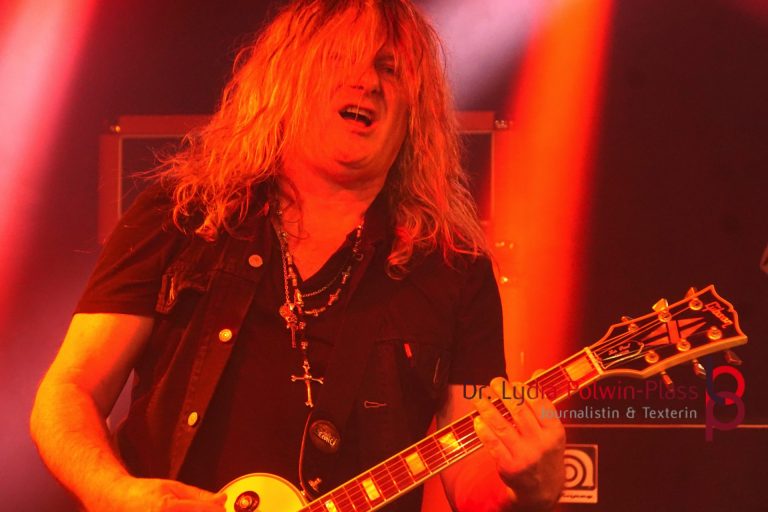Leo Leoni, wie er mit richtigem Namen heißt, seine Zeichens Gitarrist und Gründer der Schweizer Band Gotthard wandelt aktuell auf Solopfaden und präsentierte gestern im Colos-Saal ein Tribute an eine Vergangenheit voller Rock’n Roll. CoreLeoni nennt sich seine Band und sie steht für großen, zeitlosen, erdigen Classic Rock, für pure Musik-Nostalgie. Zu seinem gestrigen Konzert brachte er das erste Live-Album der Band mit, auf dem die Schweizer einmal mehr ihre Passion für zeitlose Musik Tribut zollt. Neben jeder Menge alter Gotthard-Stücken der Frühphase gab es auch einige brandneue Eigenkompositionen, wie “Standing in The Light”, “Firedance”, “Purple Dynamite”, “Let Life Begin Tonight” und viele mehr auf die Ohren. Stücke mit klassischem Hymnencharakter, die zeitlose, mitreißende Rockmomente bieten. Das empfand auch das Publikum so und machte ordentlich mit. Es wurde wild getanzt, fleissßg mitgesungen und ganz nach deutscher Manier gerne auch mal mitgeklatscht.