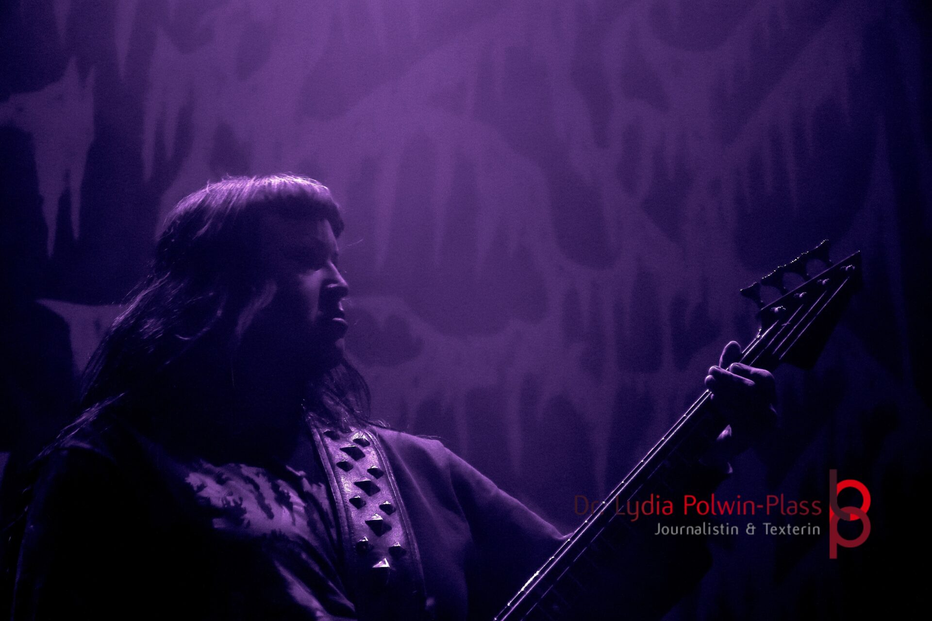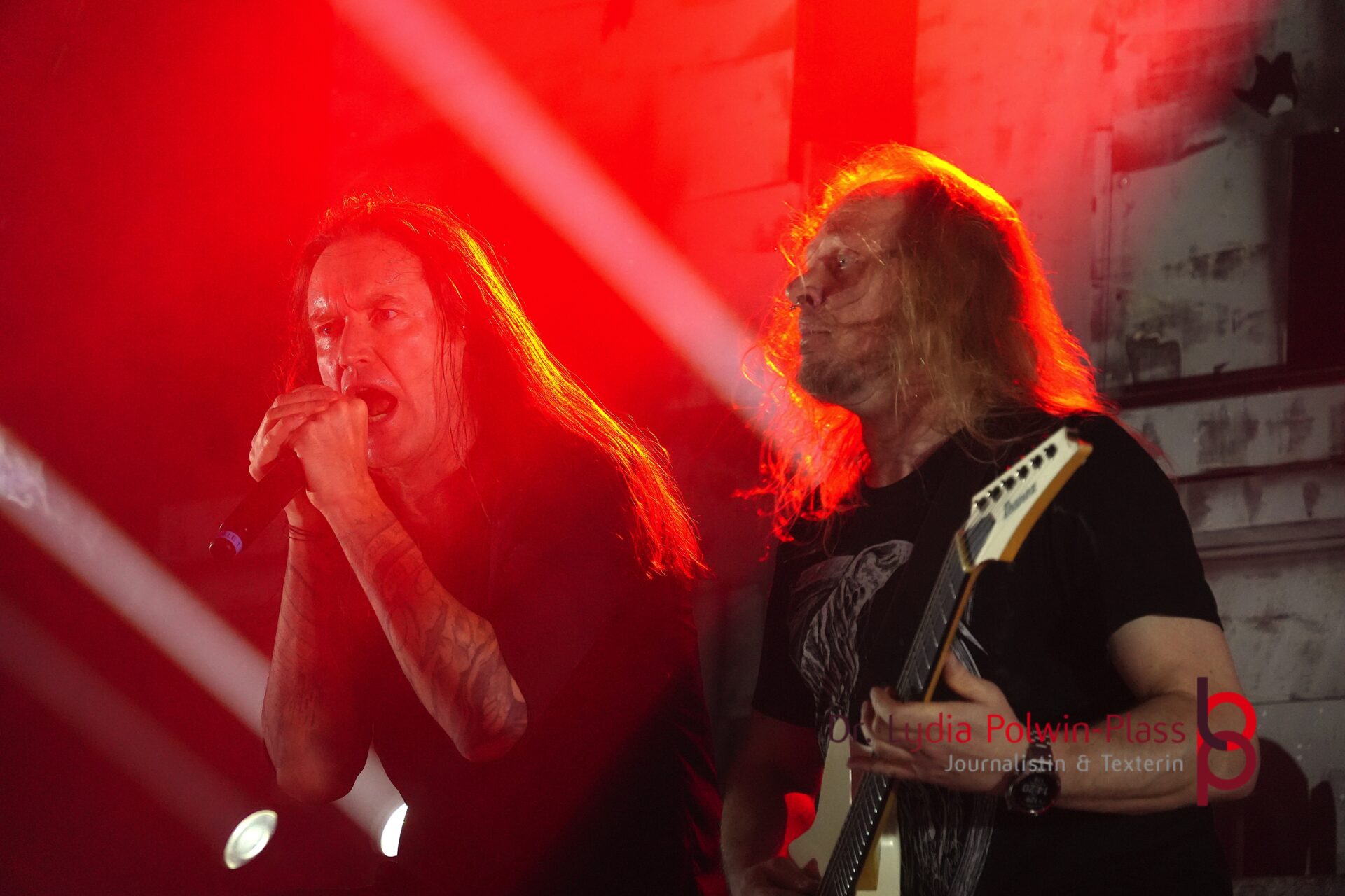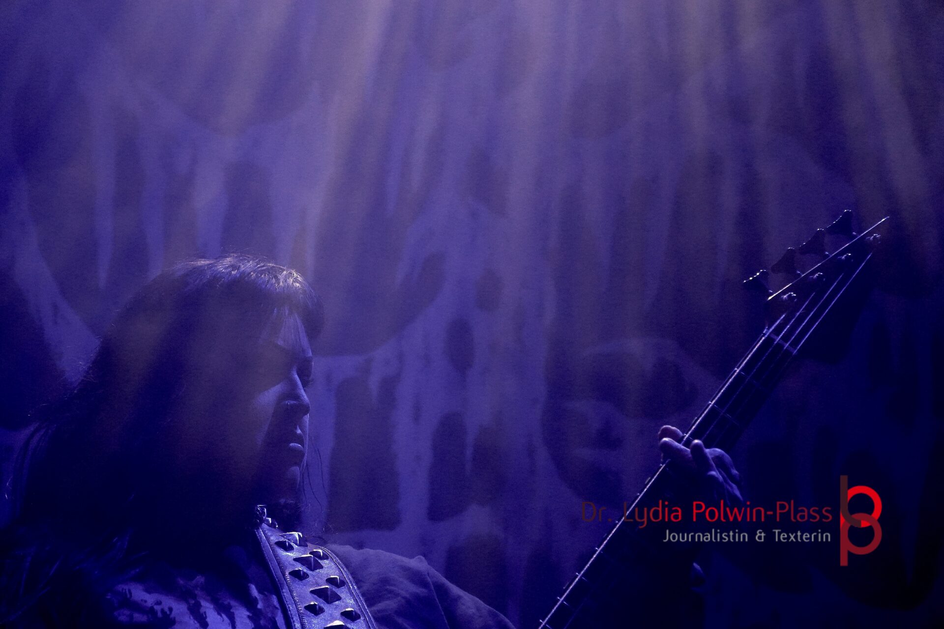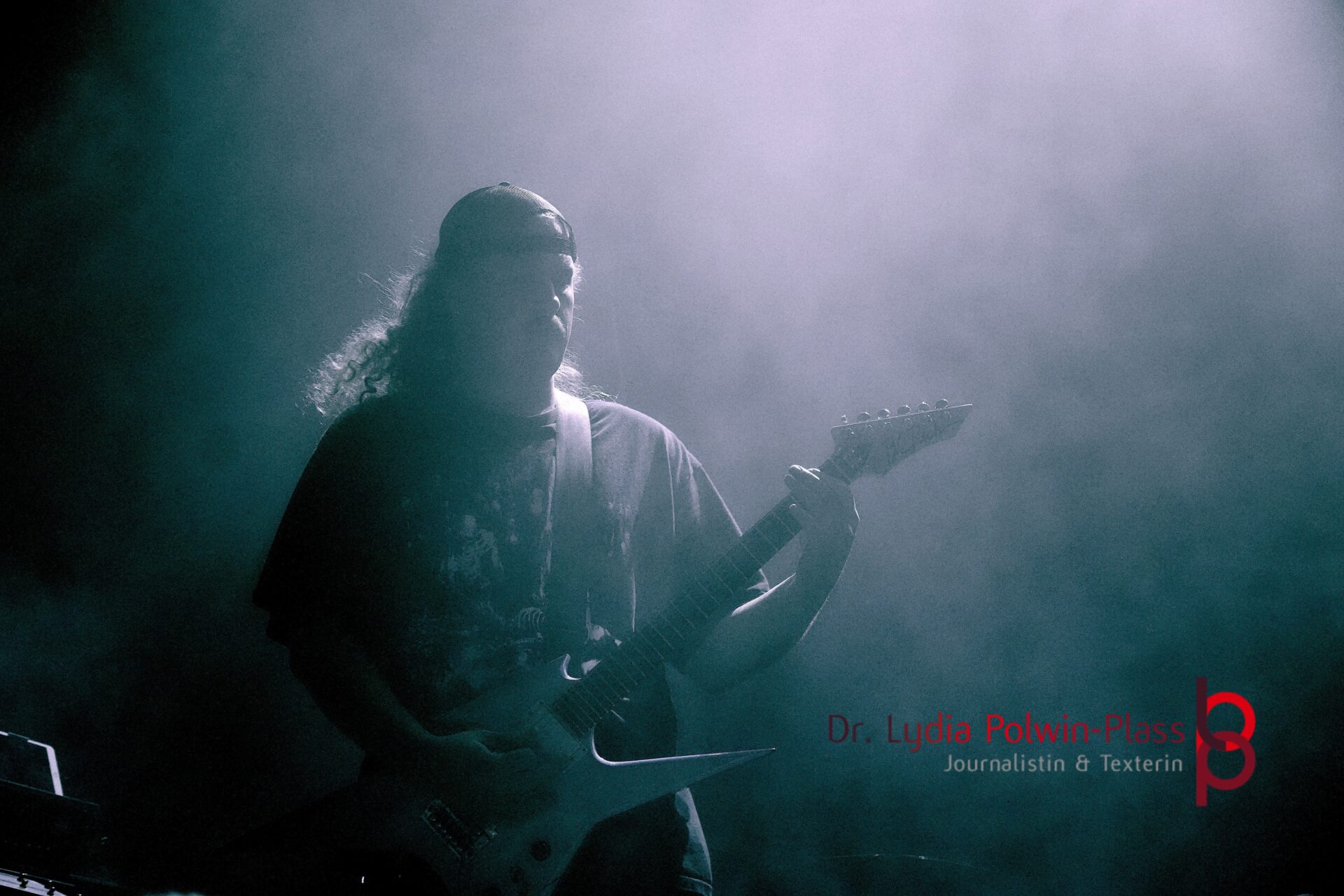 Den Auftakt machten Frozen Soul aus Texas. Die US-Band, gegründet 2018 in Fort Worth, hat sich mit ihrem kompromisslosen Old-School-Death-Metal und dem Debütalbum Crypt of Ice schnell einen Namen in der Szene erspielt. Mit schweren Riffs, tiefen Growls und eisiger Atmosphäre brachte die Band die Halle früh auf Betriebstemperatur und setzte den ersten Moshpit des Abends in Bewegung. Ich genoss jeden Ton in vollen Zügen und verausgabte mich gleich am Anfang körperlich und enegetisch. Das Licht war leider außer dunkel nur dunkel – deshalb gibt es auch nicht viele Bilder der Band.
