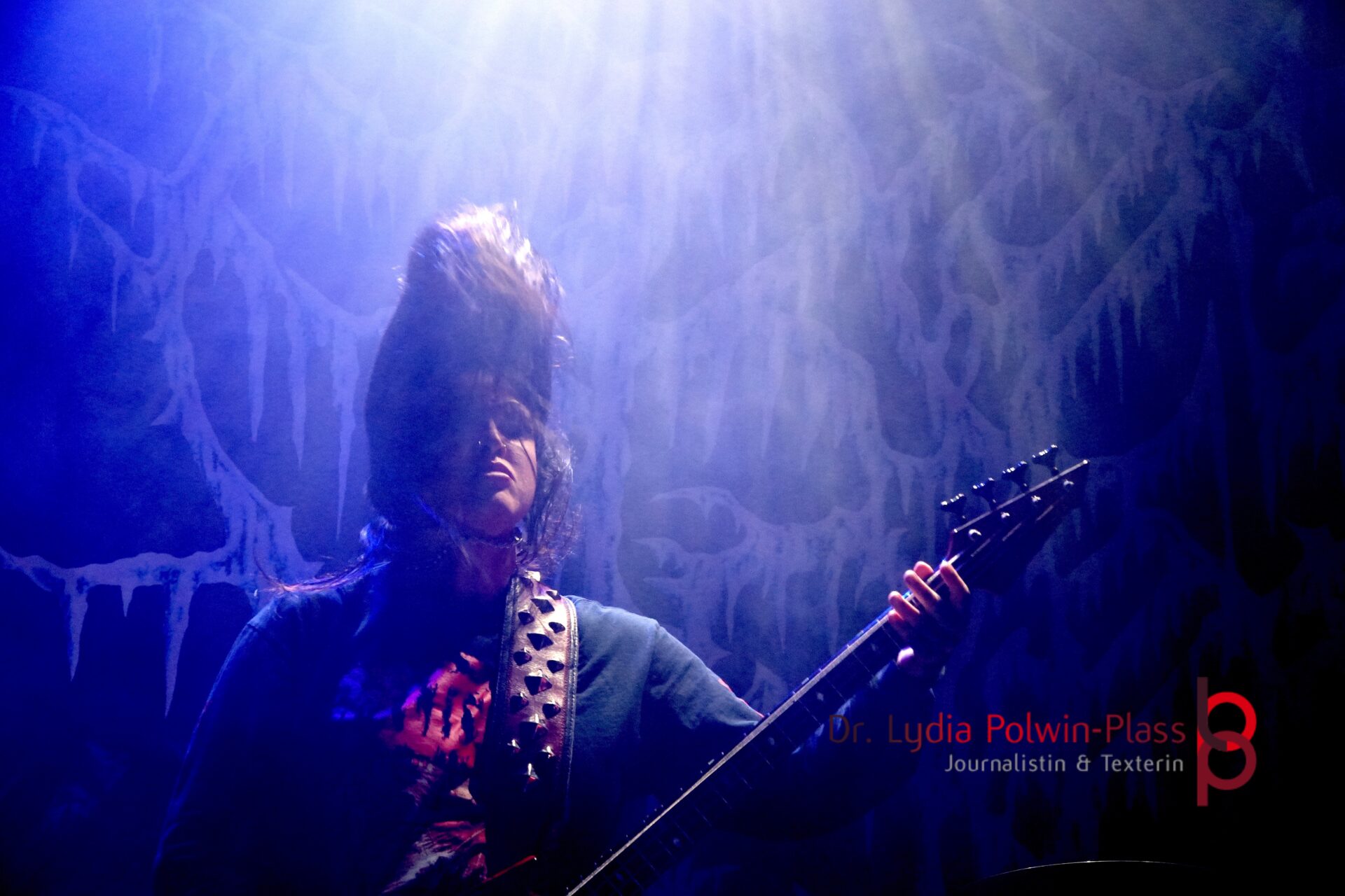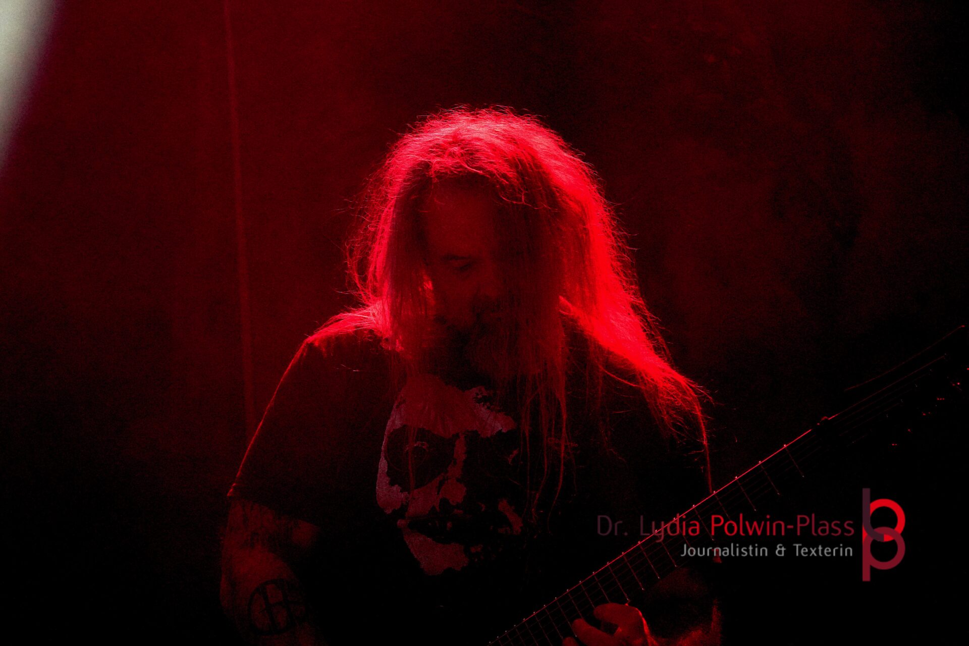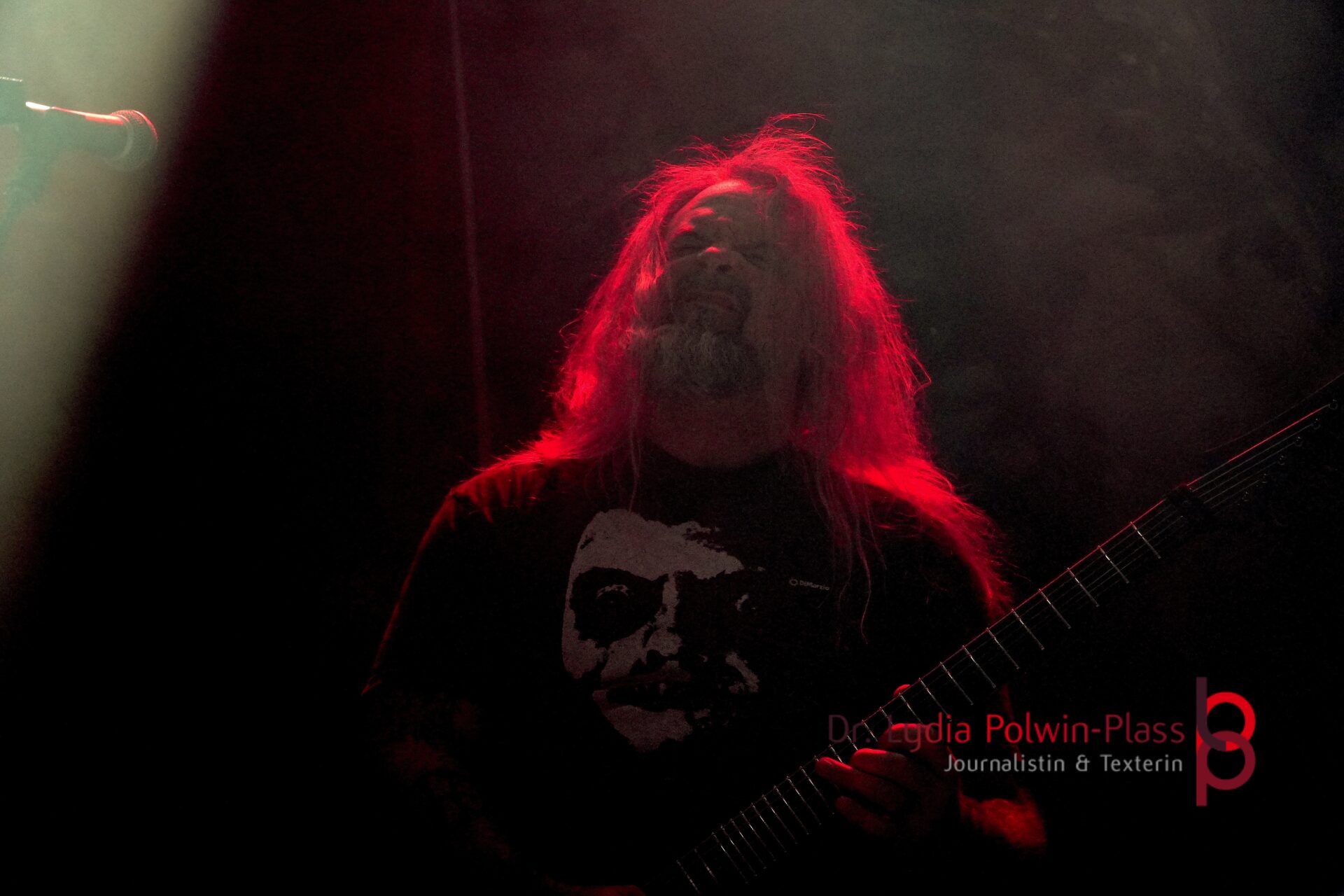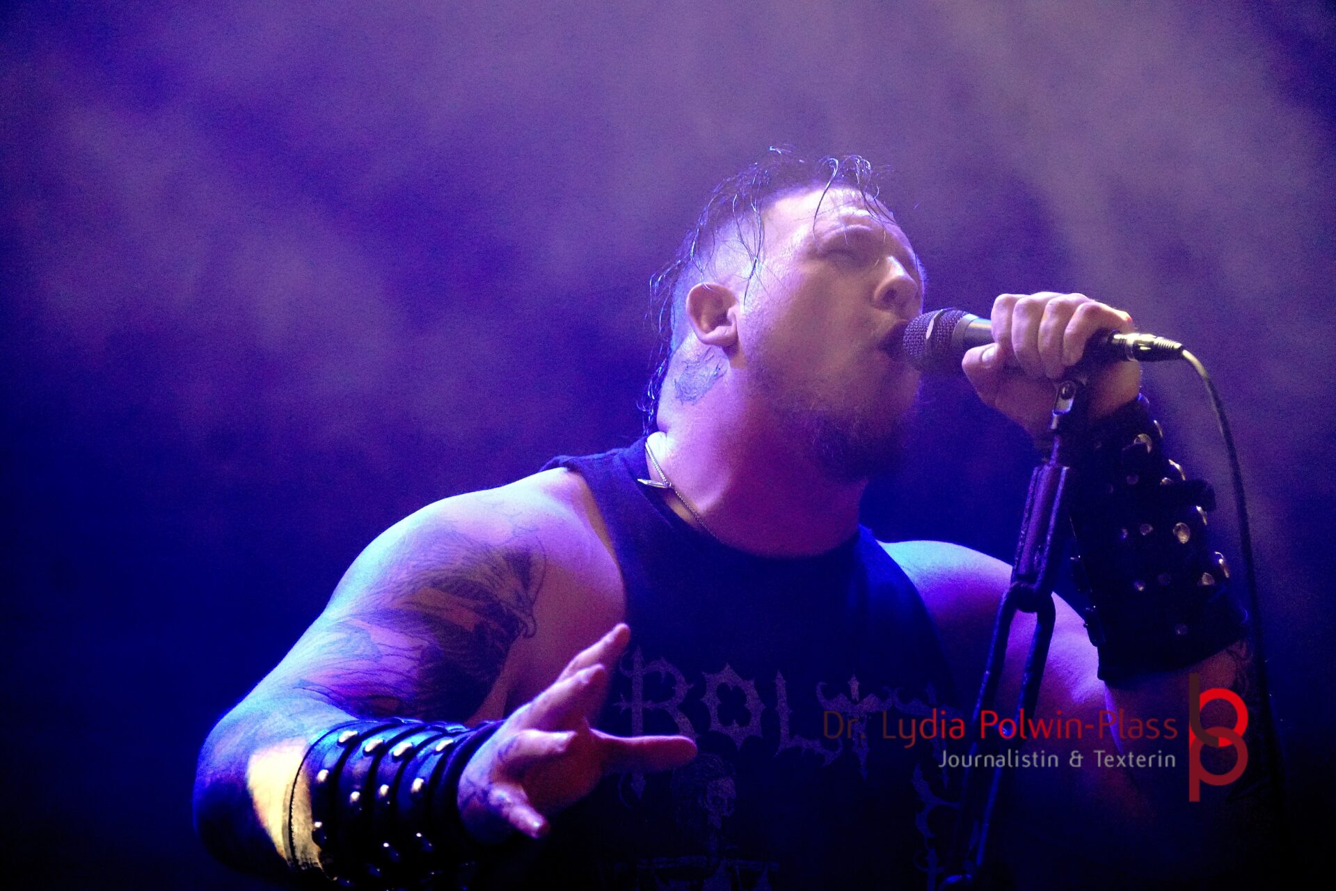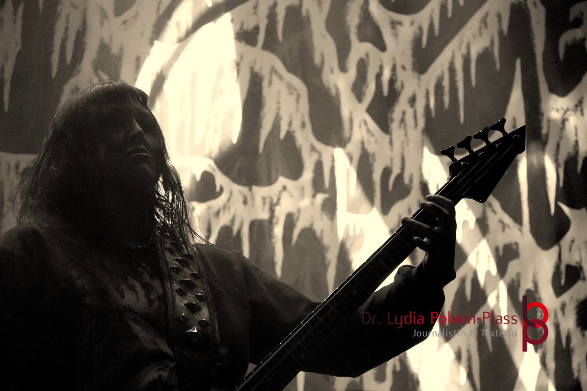Den Auftakt machten Frozen Soul aus Texas. Die US-Band, gegründet 2018 in Fort Worth, hat sich mit ihrem kompromisslosen Old-School-Death-Metal und dem Debütalbum Crypt of Ice schnell einen Namen in der Szene erspielt. Mit schweren Riffs, tiefen Growls und eisiger Atmosphäre brachte die Band die Halle früh auf Betriebstemperatur und setzte den ersten Moshpit des Abends in Bewegung. Ich genoss jeden Ton in vollen Zügen und verausgabte mich gleich am Anfang körperlich und enegetisch. Das Licht war leider außer dunkel nur dunkel – deshalb gibt es auch nicht viele Bilder der Band.