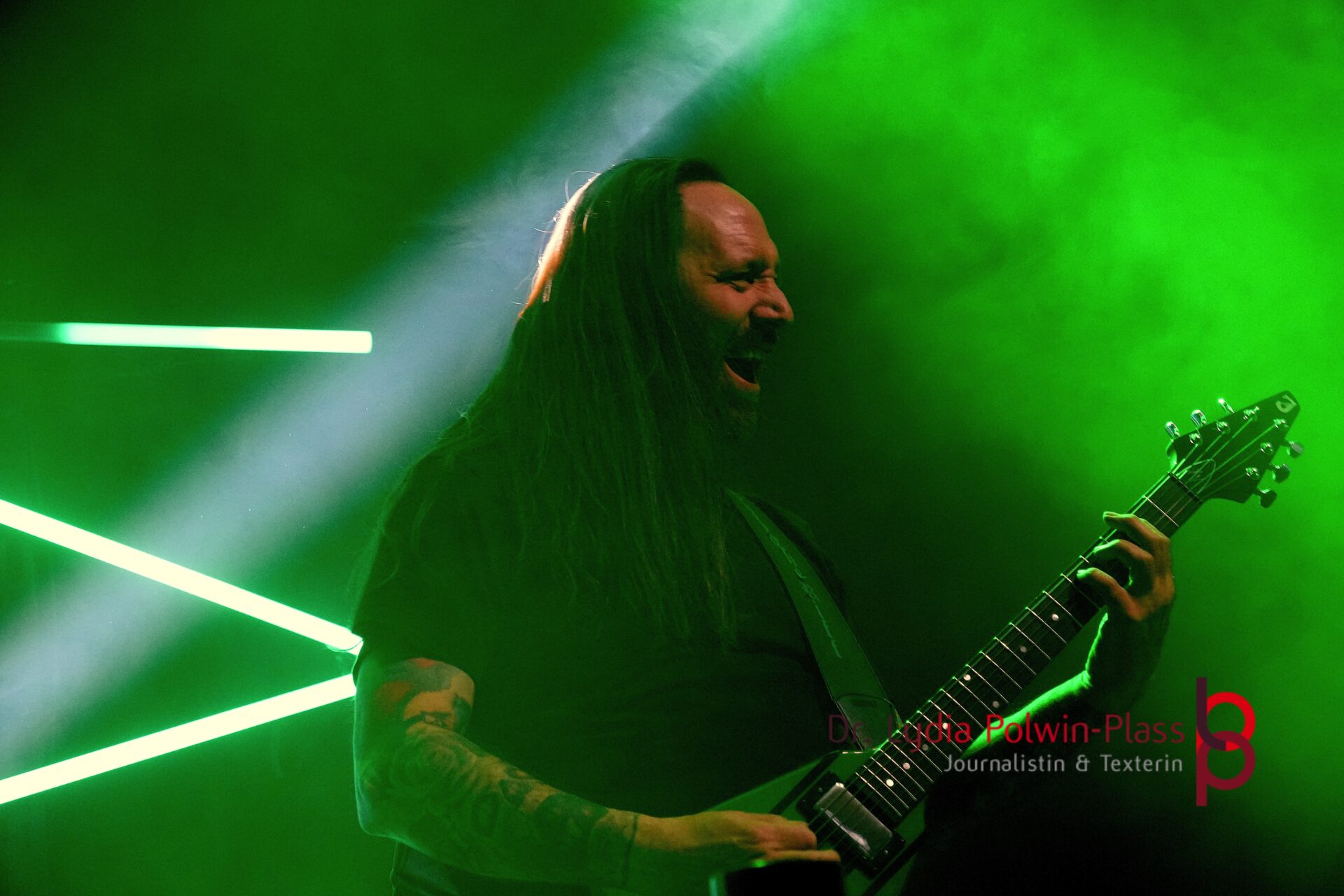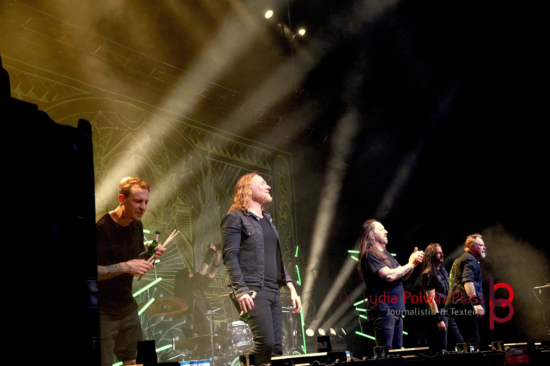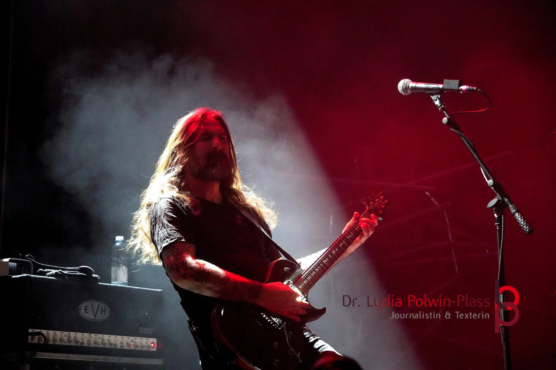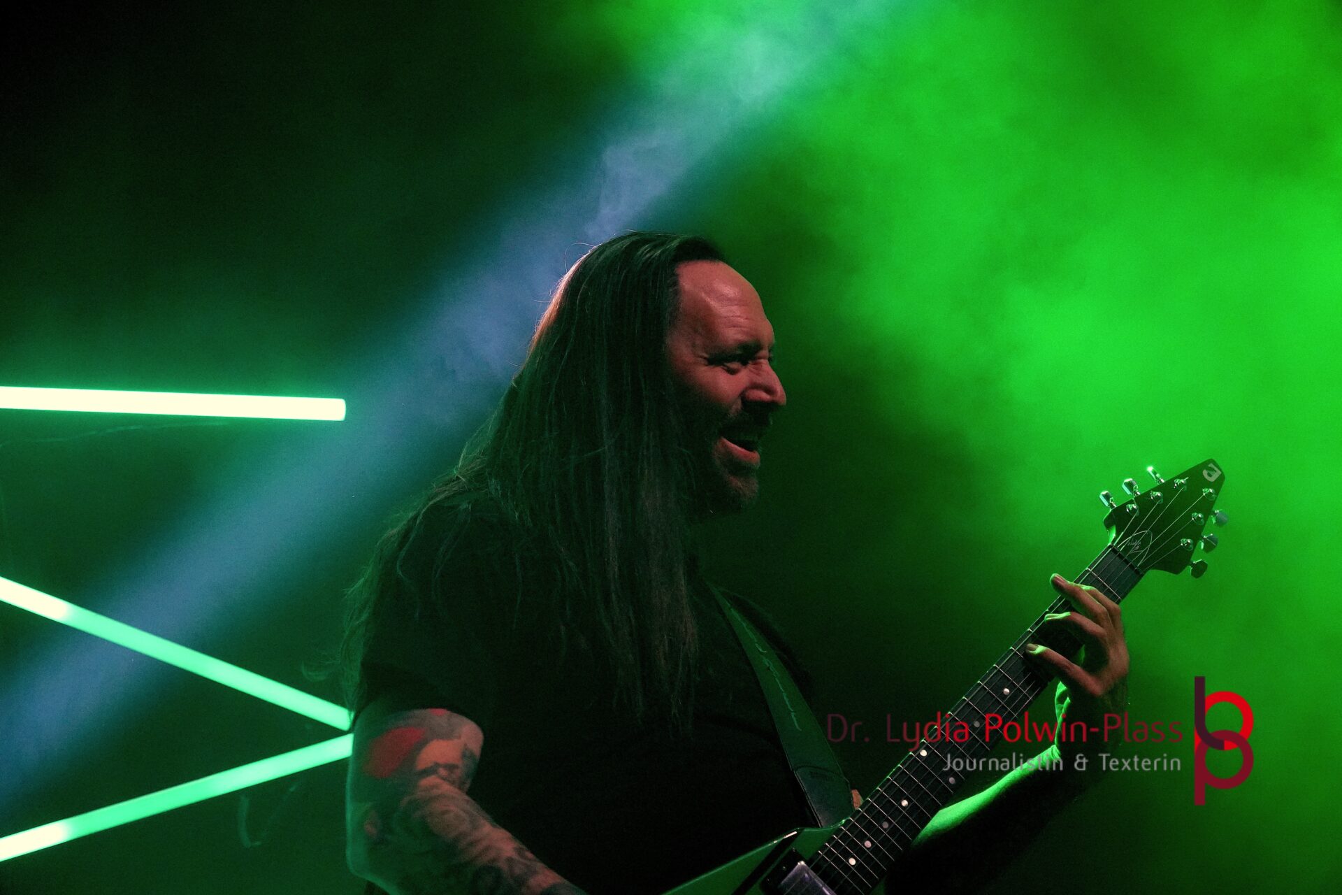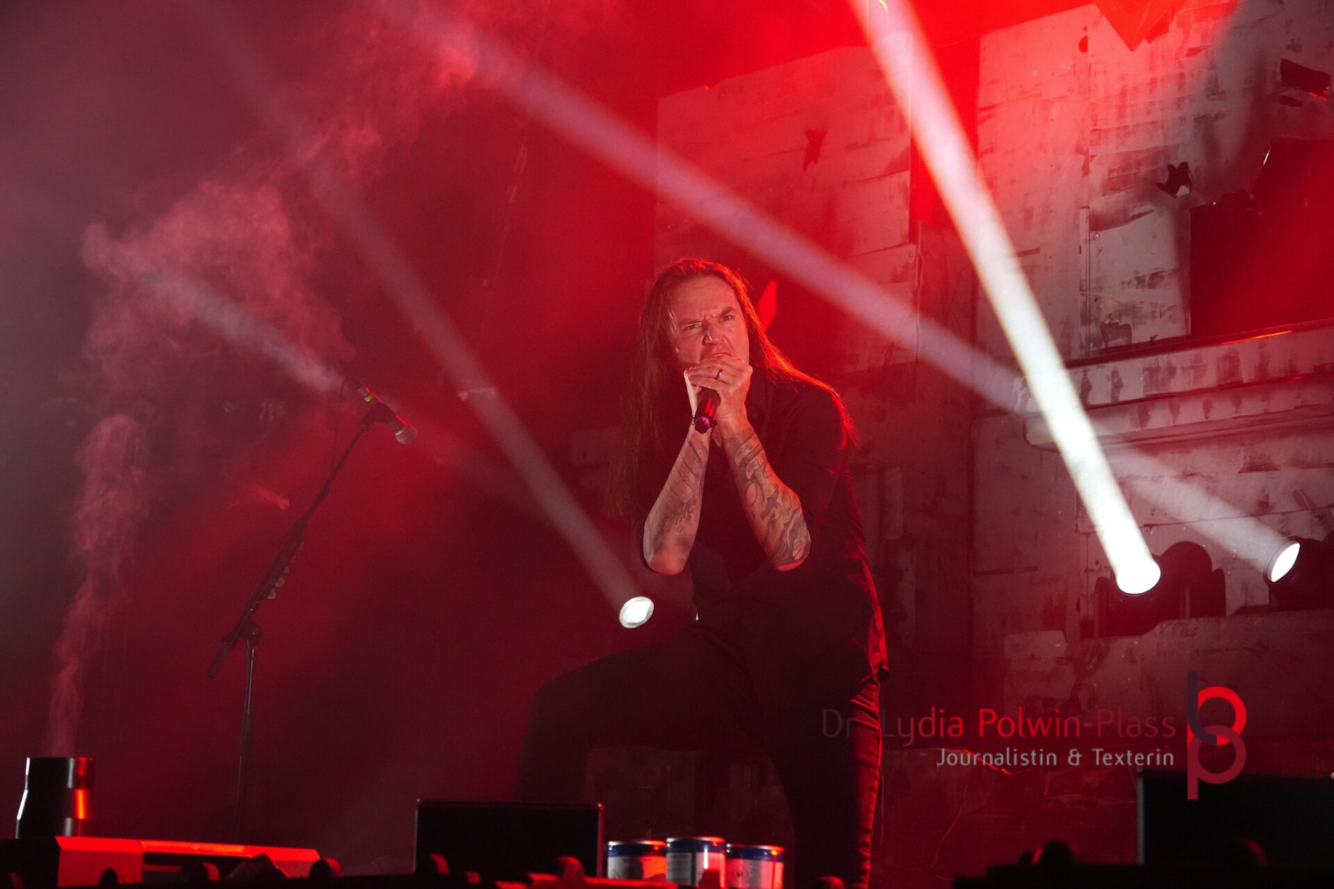 Mit The Halo Effect folgte ein echtes Highlight für Fans des Göteborg-Sounds. Die schwedische Band wurde 2019 von ehemaligen Mitgliedern von In Flames gegründet und vereint Musiker wie Sänger Mikael Stanne. Frontmann von Dark Tranquility und Gitarrist Jesper Strömblad. Entsprechend stark geprägt ist der Sound der Gruppe vom klassischen melodischen Death Metal der 1990er-Jahre. Hymnische Melodien, zweistimmige Gitarren und Stannes markante Stimme und sympathisch-herzliche Bühnenpräsenz sorgten für einen der atmosphärisch dichtesten Momente des Abends.