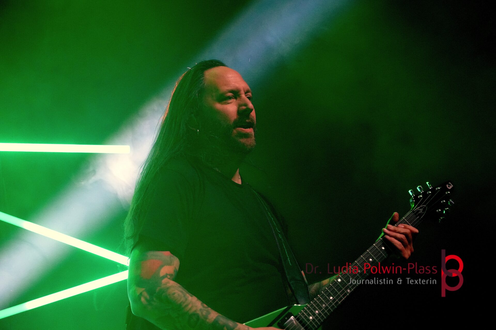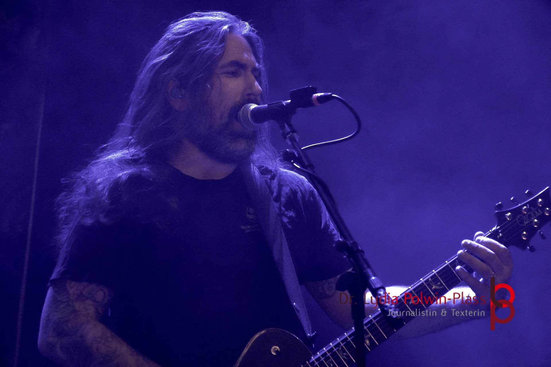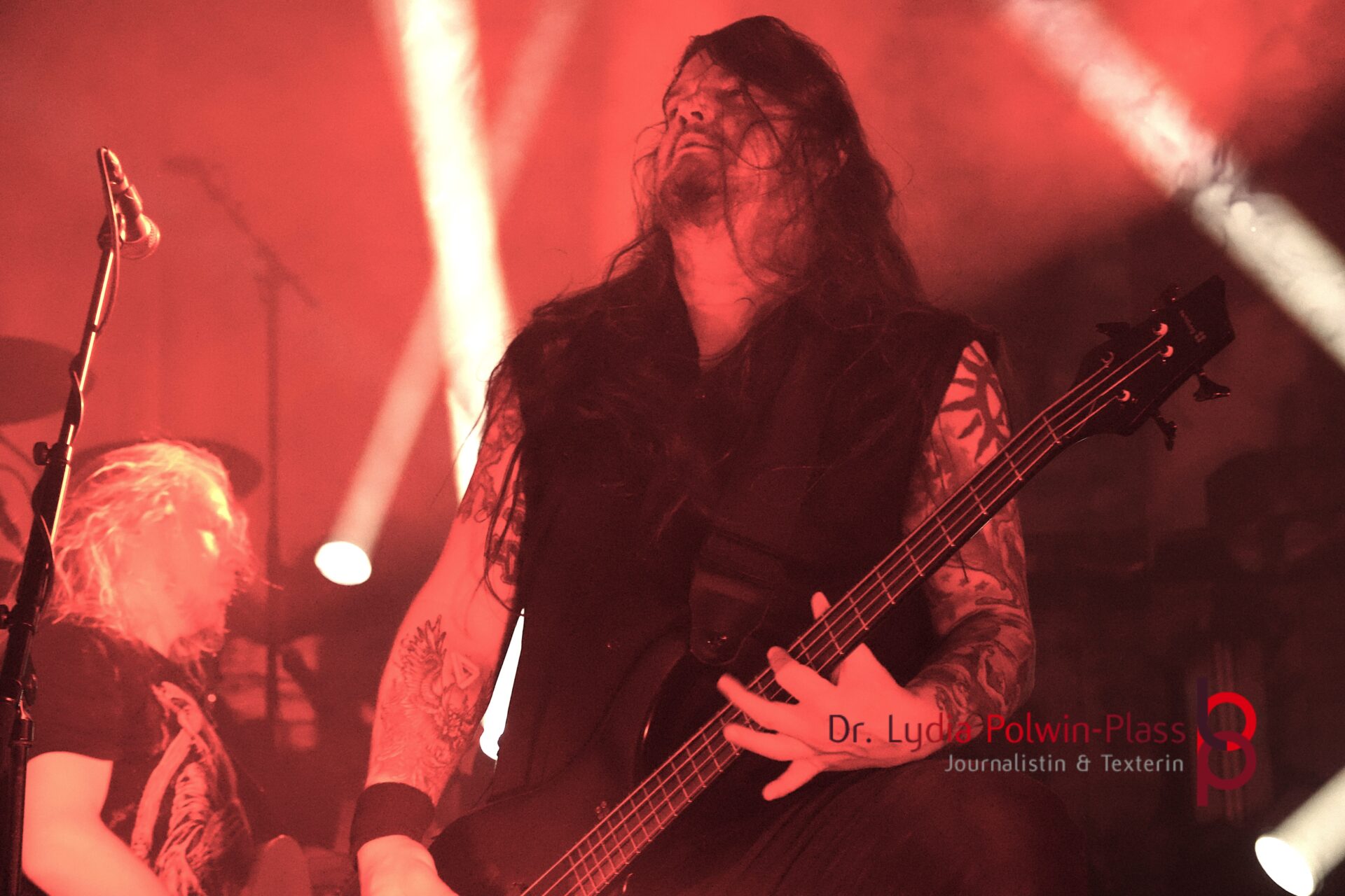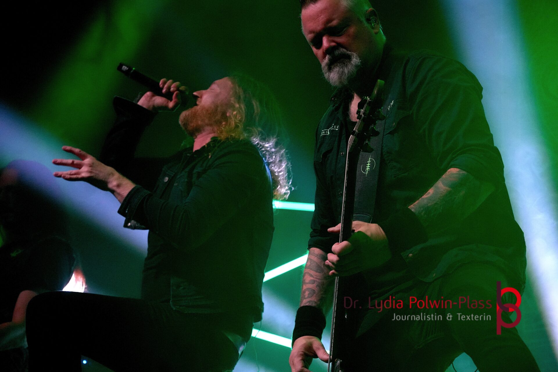 Mit The Halo Effect folgte ein echtes Highlight für Fans des Göteborg-Sounds. Die schwedische Band wurde 2019 von ehemaligen Mitgliedern von In Flames gegründet und vereint Musiker wie Sänger Mikael Stanne. Frontmann von Dark Tranquility und Gitarrist Jesper Strömblad. Entsprechend stark geprägt ist der Sound der Gruppe vom klassischen melodischen Death Metal der 1990er-Jahre. Hymnische Melodien, zweistimmige Gitarren und Stannes markante Stimme und sympathisch-herzliche Bühnenpräsenz sorgten für einen der atmosphärisch dichtesten Momente des Abends.