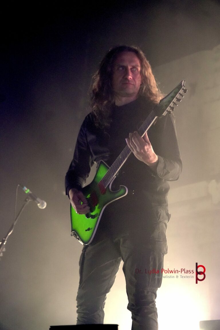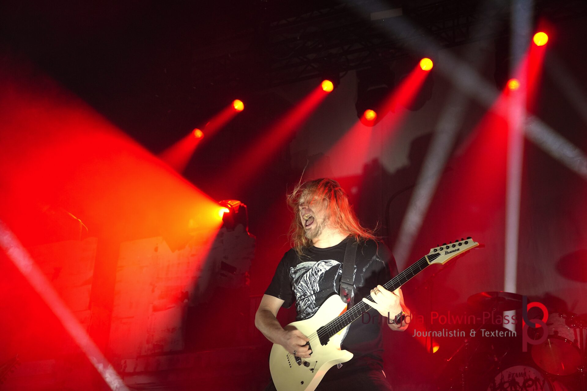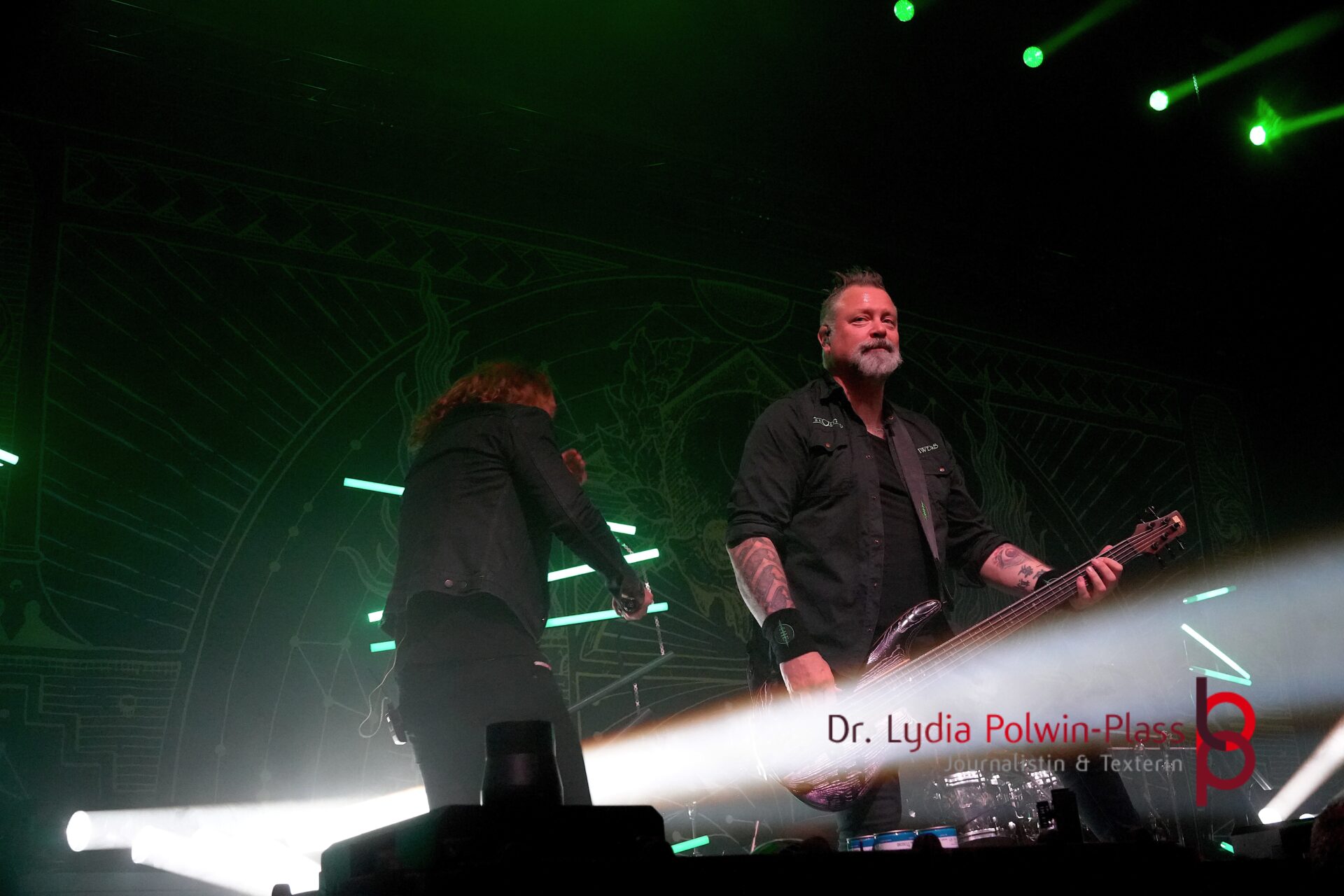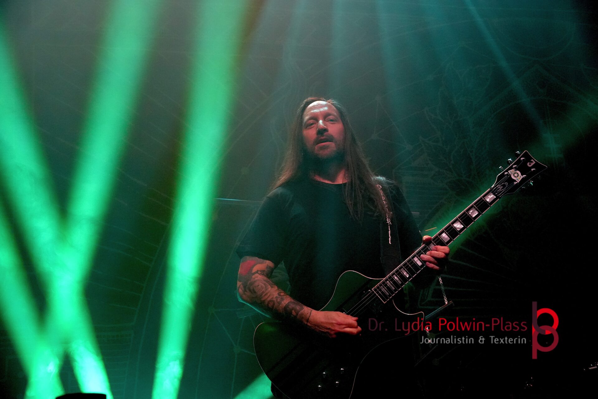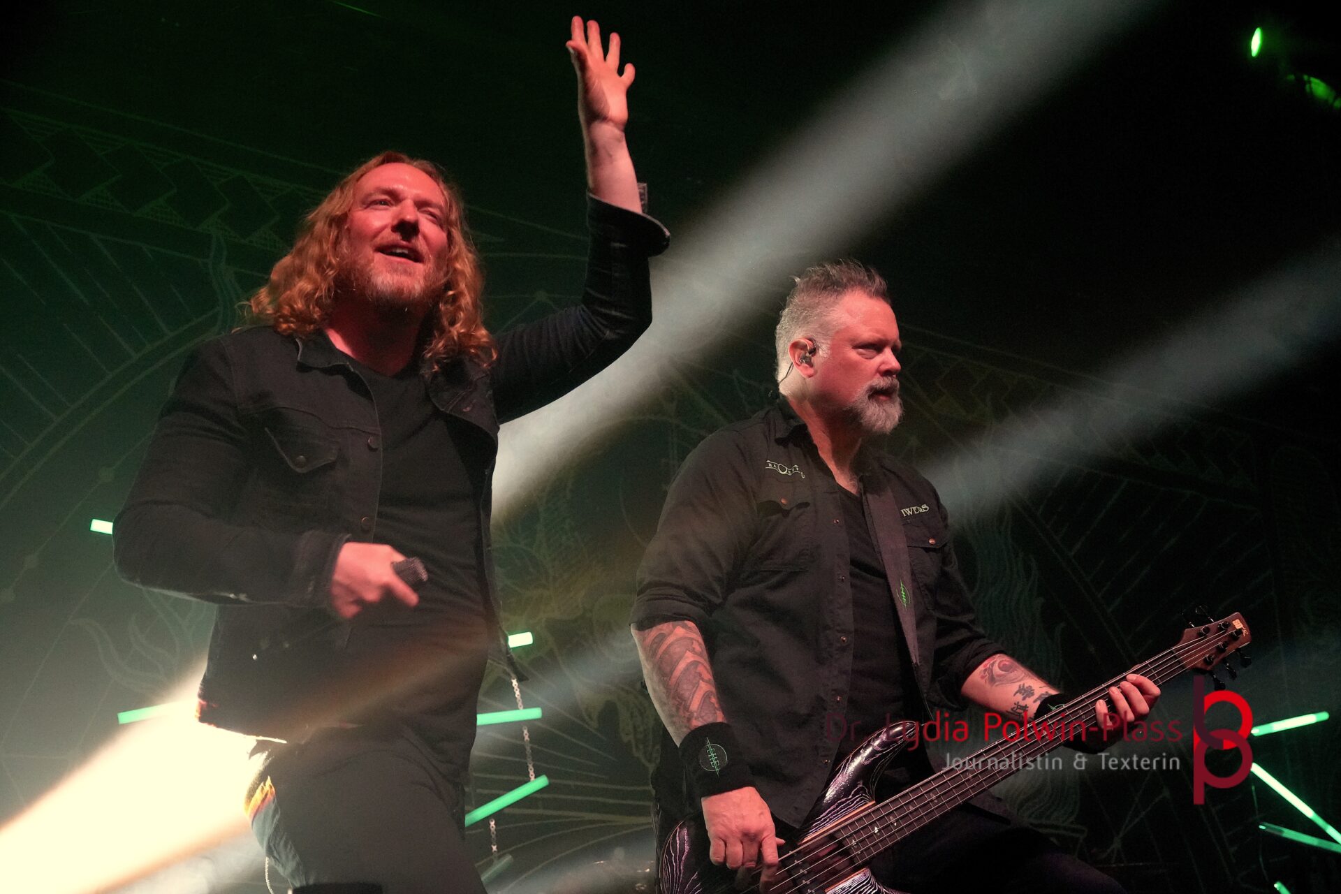 Mit The Halo Effect folgte ein echtes Highlight für Fans des Göteborg-Sounds. Die schwedische Band wurde 2019 von ehemaligen Mitgliedern von In Flames gegründet und vereint Musiker wie Sänger Mikael Stanne. Frontmann von Dark Tranquility und Gitarrist Jesper Strömblad. Entsprechend stark geprägt ist der Sound der Gruppe vom klassischen melodischen Death Metal der 1990er-Jahre. Hymnische Melodien, zweistimmige Gitarren und Stannes markante Stimme und sympathisch-herzliche Bühnenpräsenz sorgten für einen der atmosphärisch dichtesten Momente des Abends.