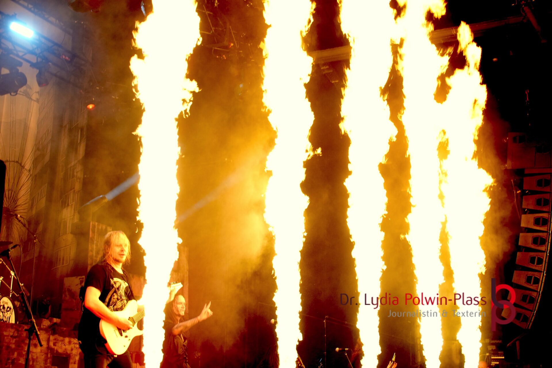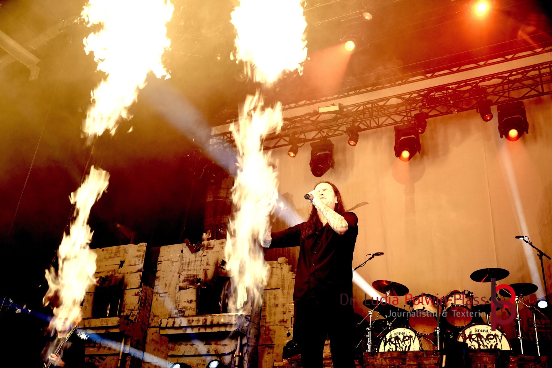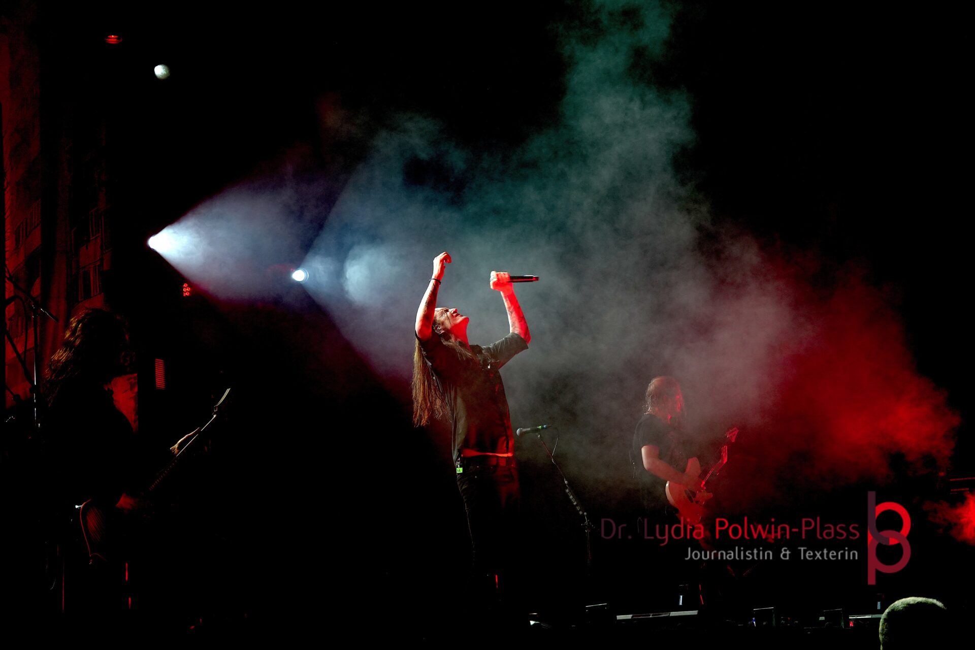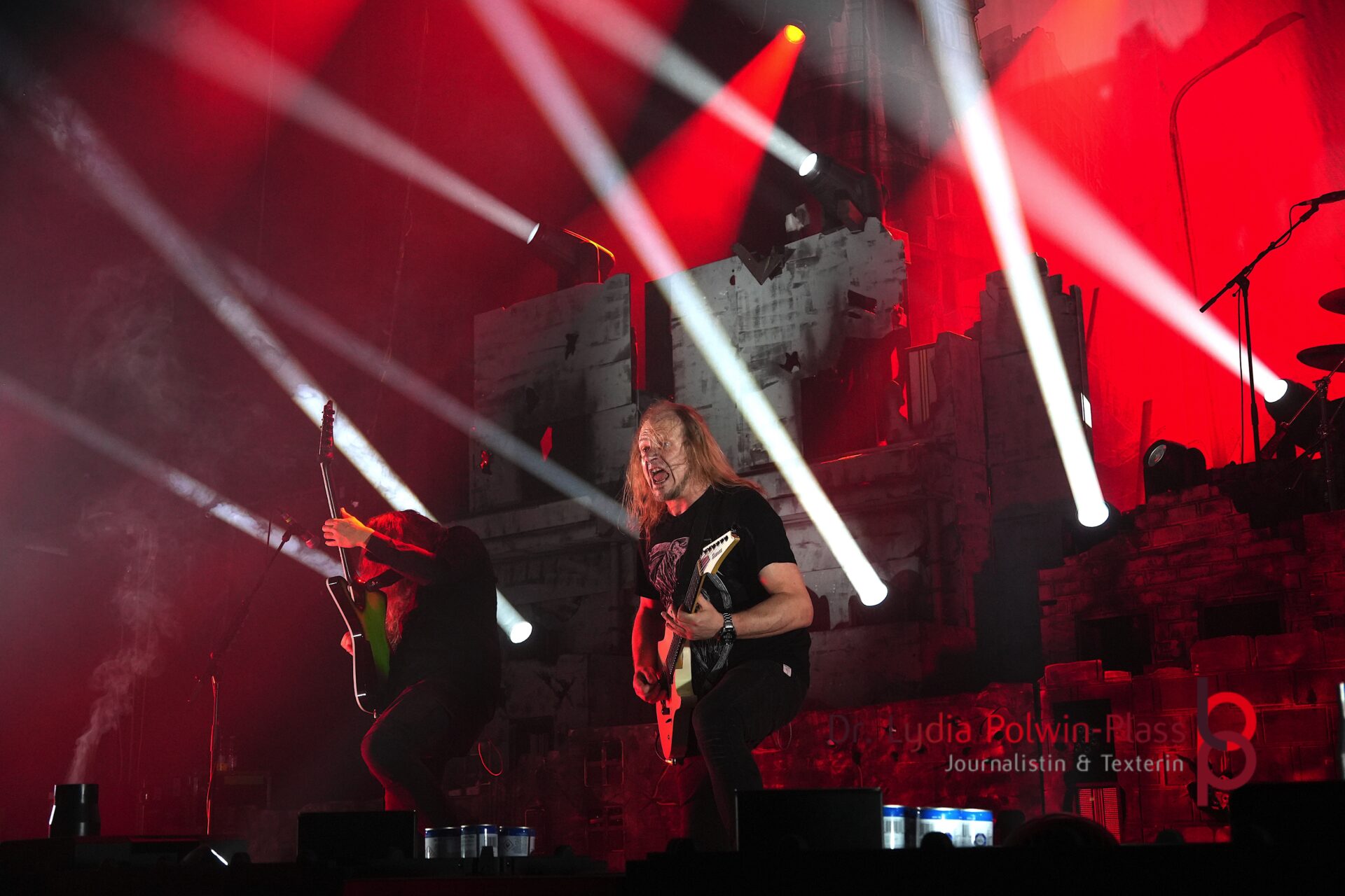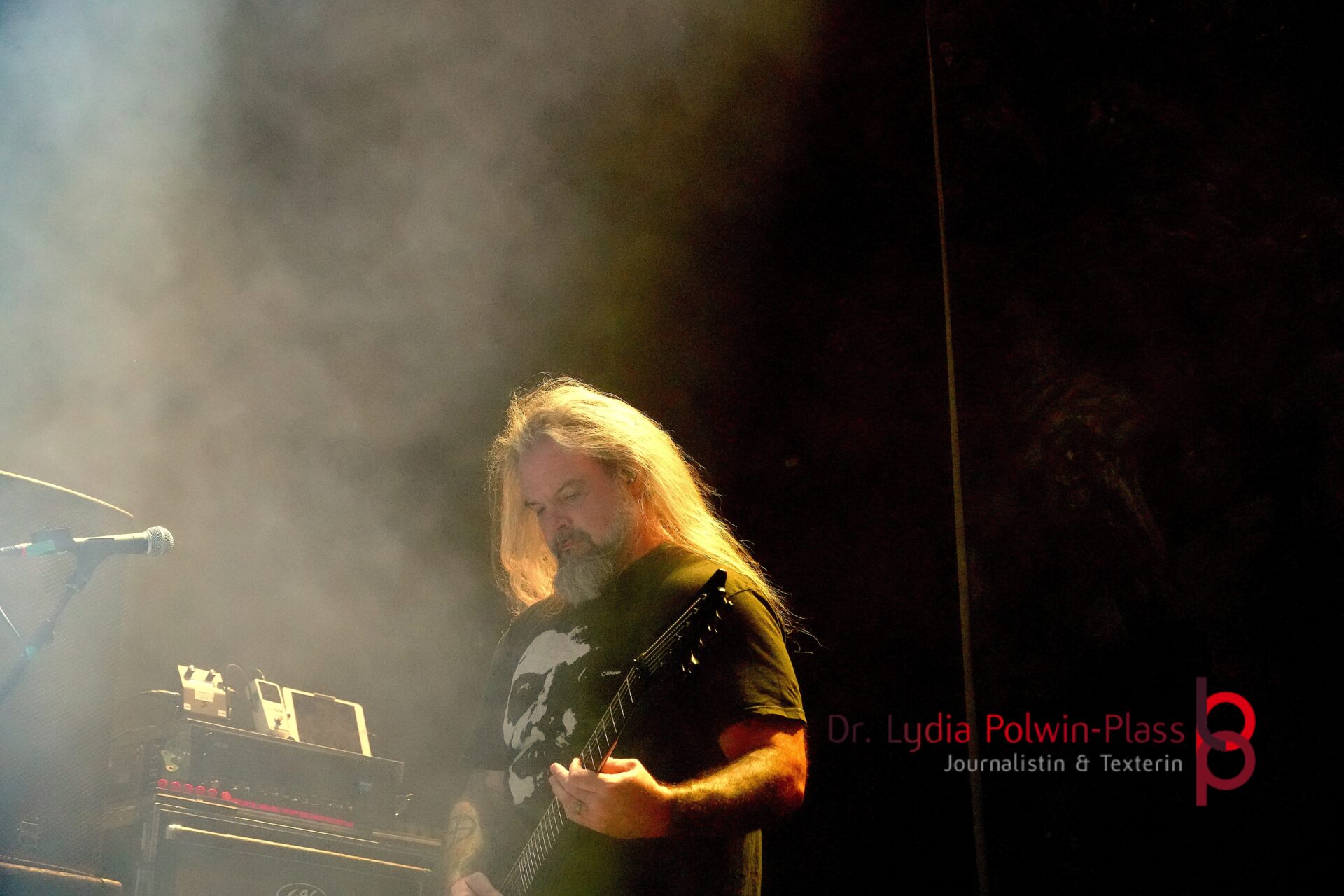 Mit The Halo Effect folgte ein echtes Highlight für Fans des Göteborg-Sounds. Die schwedische Band wurde 2019 von ehemaligen Mitgliedern von In Flames gegründet und vereint Musiker wie Sänger Mikael Stanne. Frontmann von Dark Tranquility und Gitarrist Jesper Strömblad. Entsprechend stark geprägt ist der Sound der Gruppe vom klassischen melodischen Death Metal der 1990er-Jahre. Hymnische Melodien, zweistimmige Gitarren und Stannes markante Stimme und sympathisch-herzliche Bühnenpräsenz sorgten für einen der atmosphärisch dichtesten Momente des Abends.
