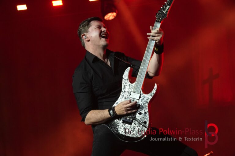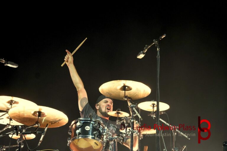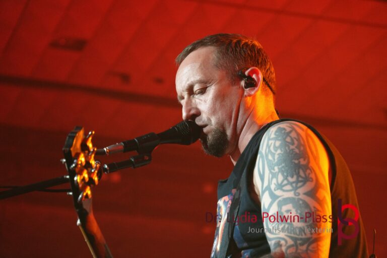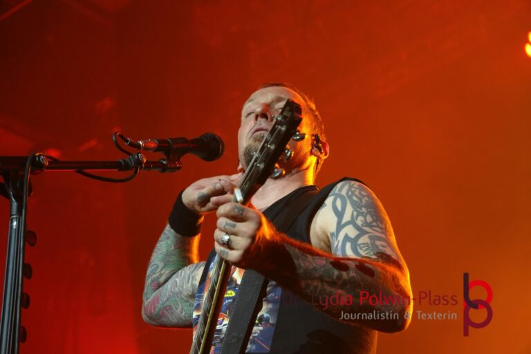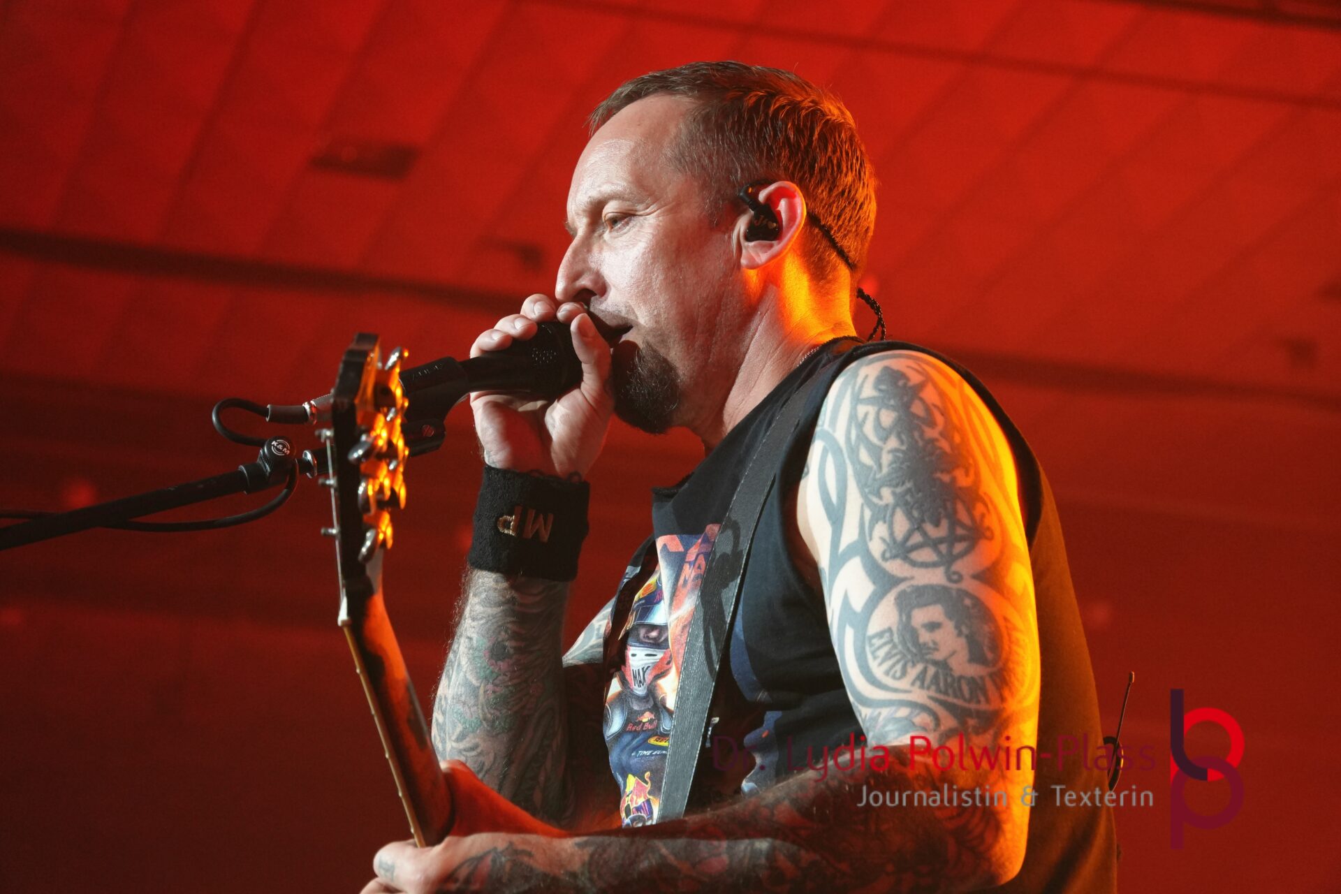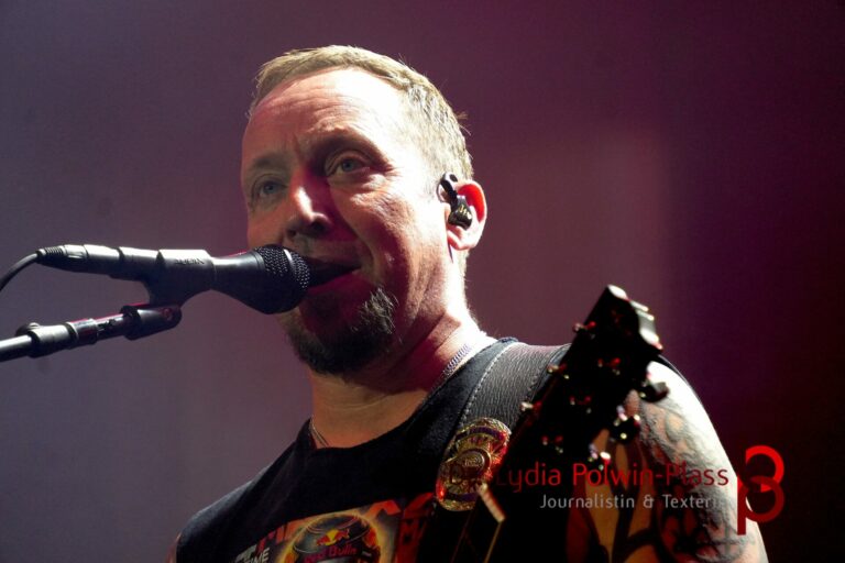 Als dann VOLBEAT die „Bretter, die die Welt bedeuten“ enterten, war die Wiener Stadthalle zum Bersten voll. Die Bühne war mit einer Zunge ins Publikum verlängert und bot so auch uns Journalisten und Fotografen viele Möglichkeiten, die Bands von allen Seiten abzuknipsen.