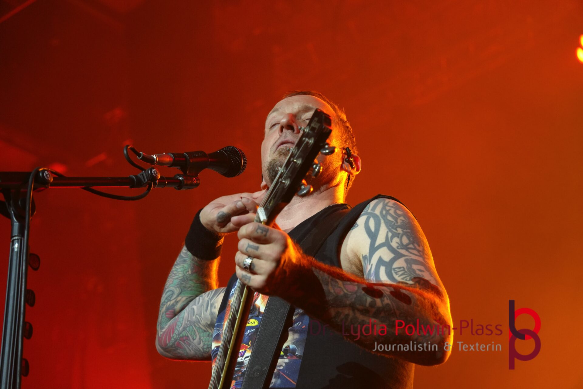 Die Stimmung in der Halle wurde bereits innerhalb weniger Minuten nach Beginn von der Energie der Jungs zum Brodeln gebracht. Kaum ein Superhit blieb ungespielt und mit jedem neuen Song stieg der Leidenschafts-Pegel bei Band und Publikum zur Potenz. VOLBEAT sind ein der mitreißendsten Live-Bands, die ich kenne und überzeugten sowohl musikalisch als auch gesanglich wieder voll und ganz.