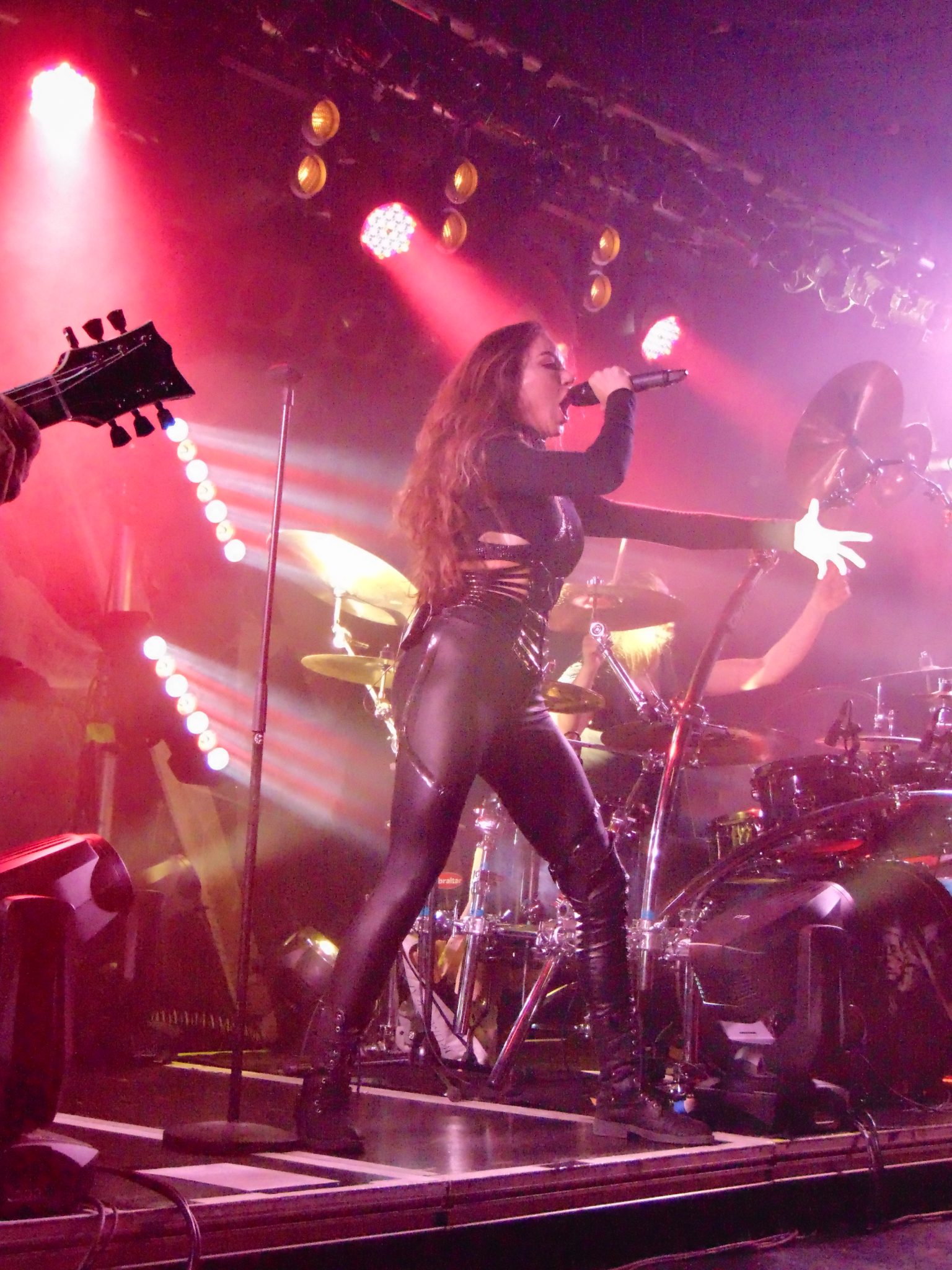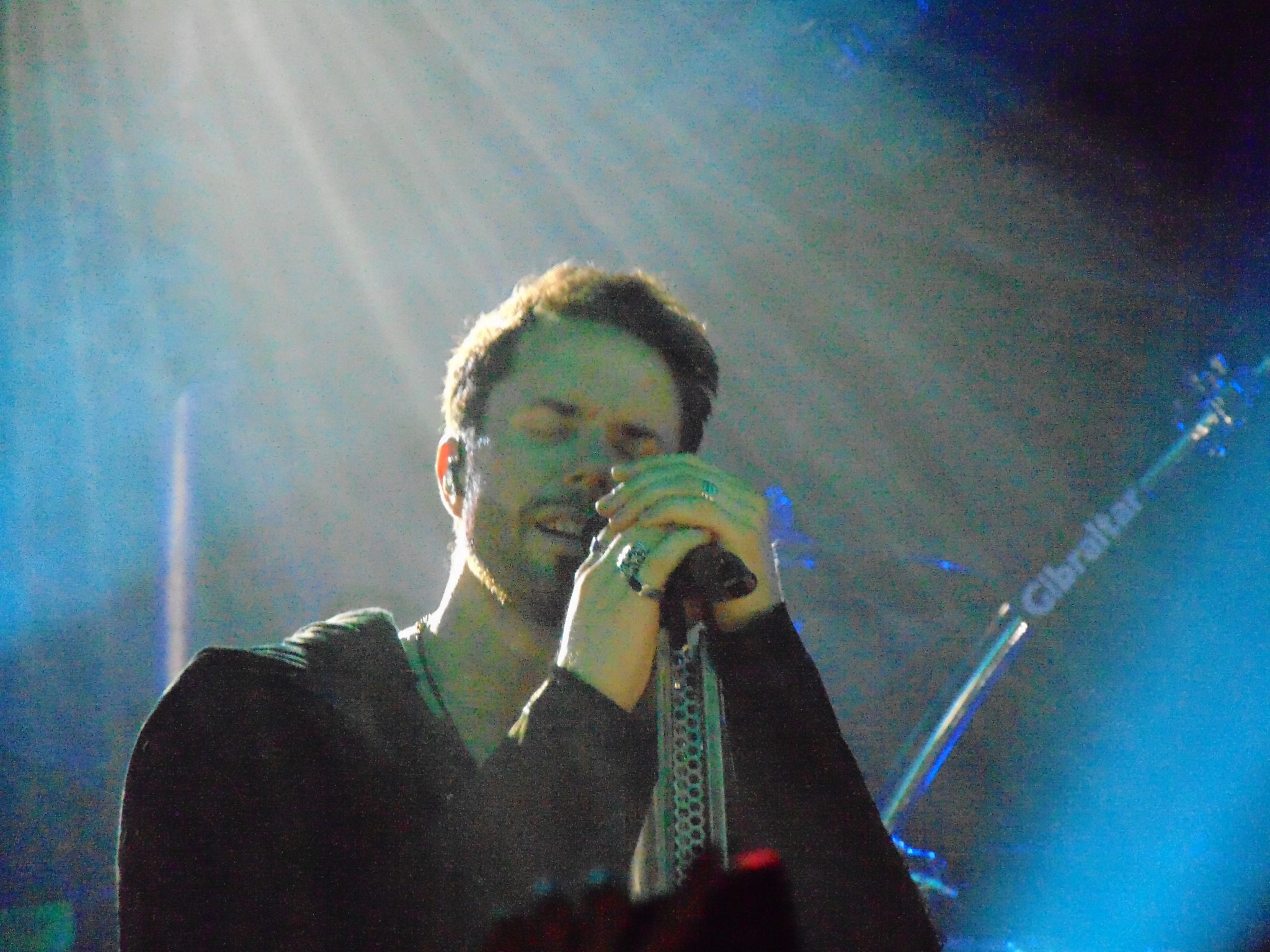 Danach hatten Kamelot es mit der vollbesetzen Halle leicht. Sänger Tommy Karevik hatte das Publikum von Anfang an von seinem Podest aus fest im Griff. Zudem wurde für Kamleot als Headliner eine Art Laufsteg installiert, den Karevik für mehrere Ausflüge ins Publikum nutzte. Als ob das nicht genug Nähe zu den Fans wäre, verschwand er auch einmal gänzlich im Publikum. Mehr Kontakt geht nicht. Mit einem ausgewogenen Set aus alten Klassikern und neuen Songs hielten Kamelot den hohen Stimmungslevel locker und erfreuten die ihre Fans sichtlich. Auch Gastsängerin Lauren Hart brillierte gesanglich, wie optisch. Neben einem glänzend aufgelegten Thomas Youngblood durften nach „Sacrimony“ auch noch Keyboarder Oliver Palotai und Schlagzeuger Alex Landenburg ein musikalisches Duell ausfechten. Kamelot wurden ihrer Headliner-Rolle mehr als gerecht und boten einfach eine klasse Show.