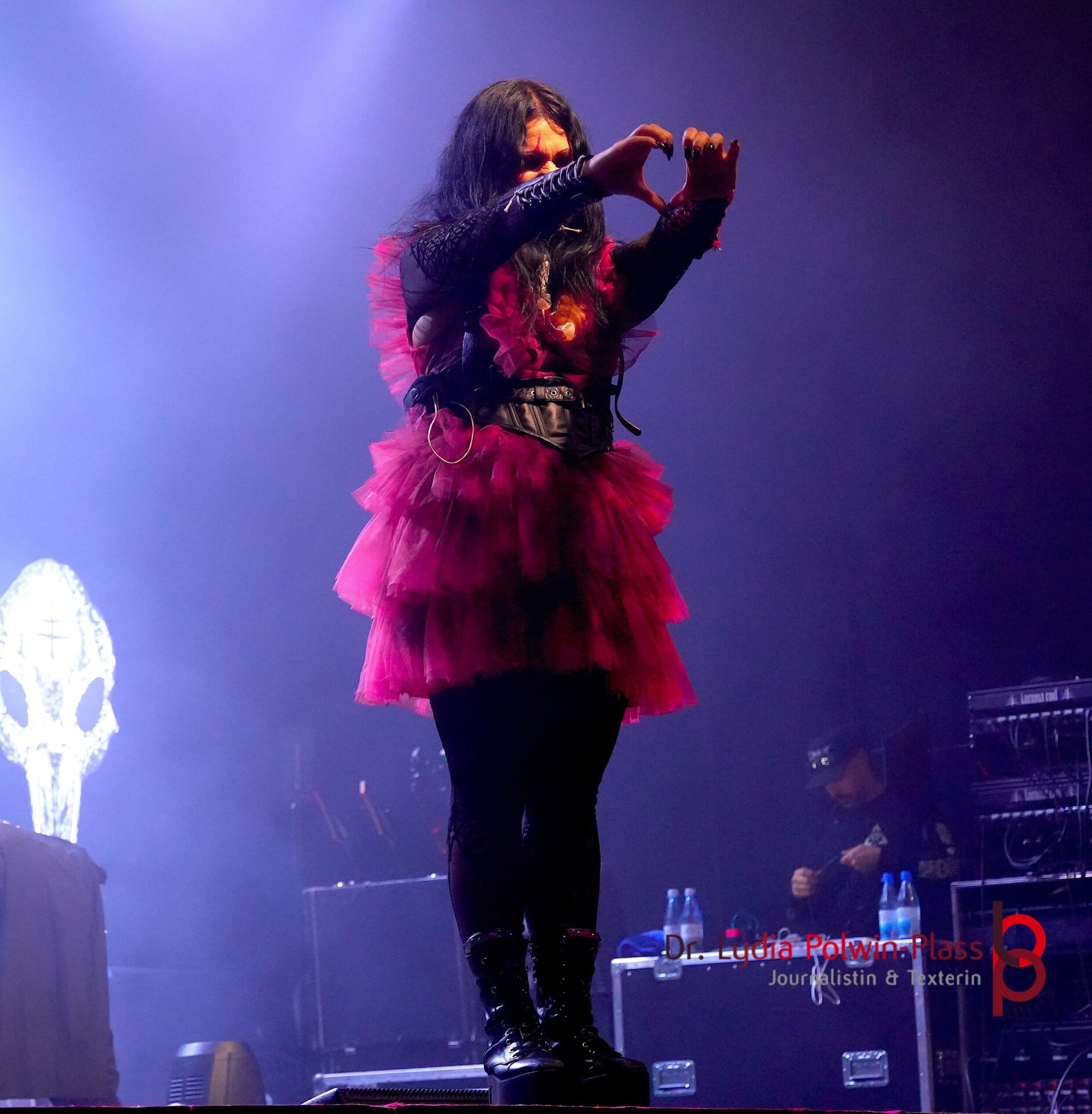Als schließlich das Licht erlosch und Lacuna Coil die Bühne betraten, war die Spannung im Raum förmlich greifbar. Mit einer Mischung aus düsterer Ästhetik, melodischer Tiefe und druckvollen Metal-Passagen zeigte die Mailänder Band, warum sie seit über 30 Jahren erfolgreich weltweit tourt. Neben mir stand ein junger Mann – offenbar Italiener – und schrie lauthals seine Begsieterung heraus: Bravo, bravissimo und mitsingen konnte er sowohl die Damenstimme als auch die Männlichen Parts.
