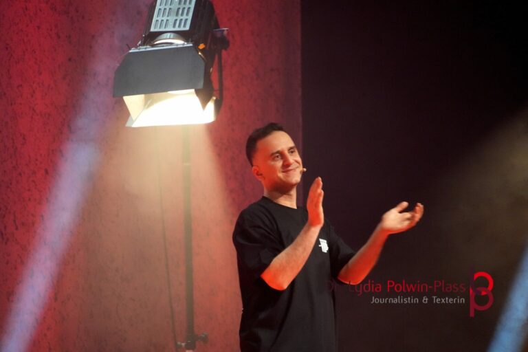 Auch die Bühnendeko passte perfekt zum Thema. Siehe Fotostrecke. Da Özcan das Publikum darum gebeten hat, die Leute, die das Programm noch nicht gesehen haben, nicht mit Videos zu spoilen, werde auch ich es nicht tun und hier nur vier seiner unzähligen genialen Gags zitieren.