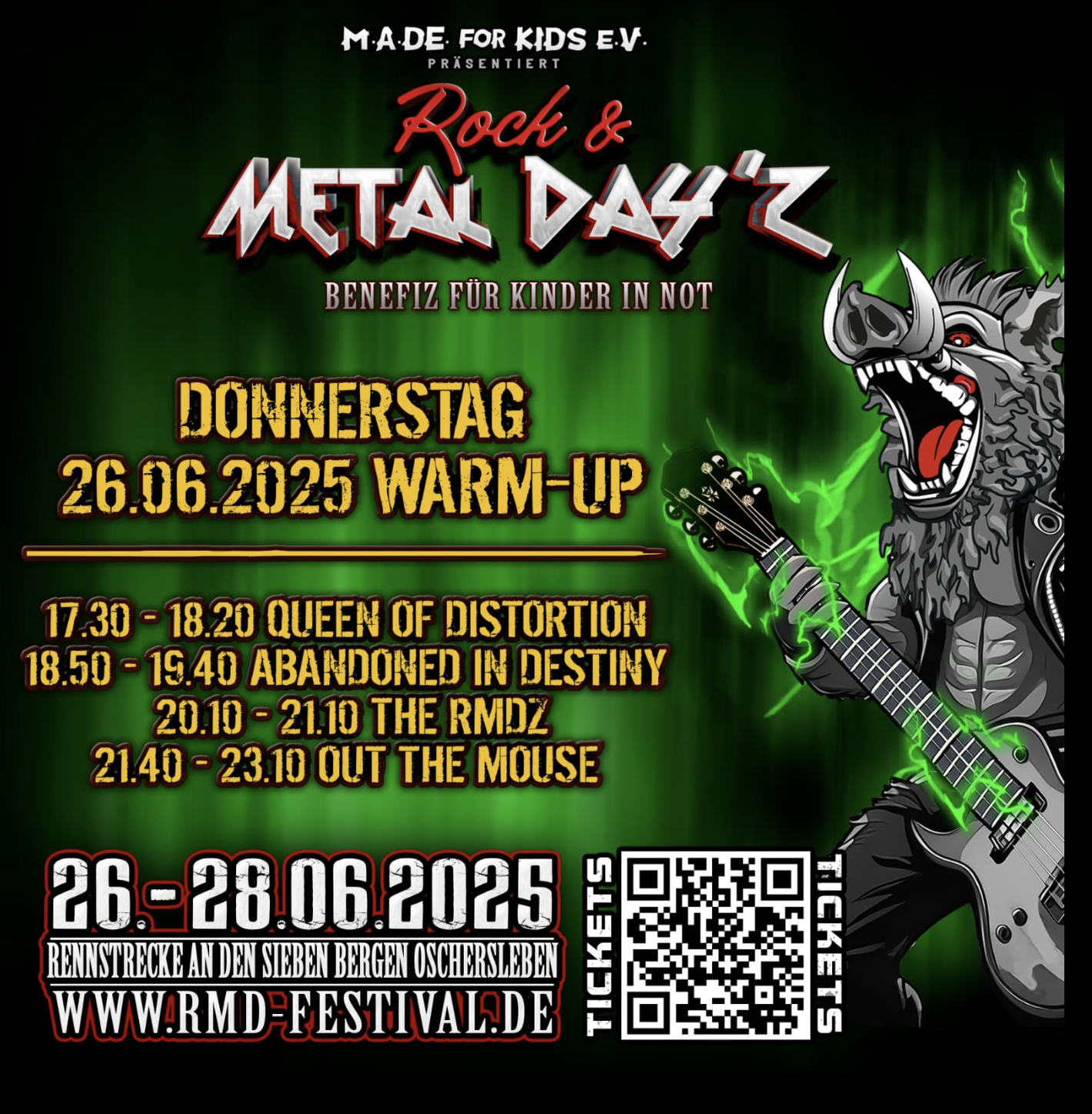 M.A.D.E for Kid’s bedeutet „Metalheads aus Deutschland für Kinder“, eine Vereinigung von Heavy Metal Fans die sich für in Not geratene Kinder und Jugendliche einsetzen. Ein Baby des Vereins sind die Rock und Metal Day’z . Diese finden dieses Jahr von 26.-28.06.25 erstmals im MSC OSCHERSLEBEN statt.