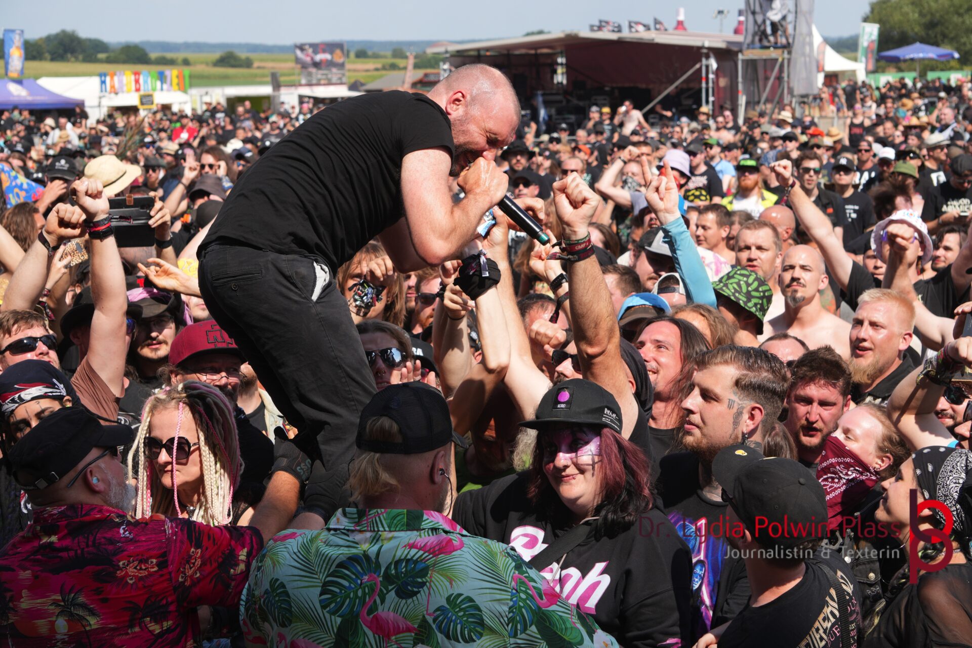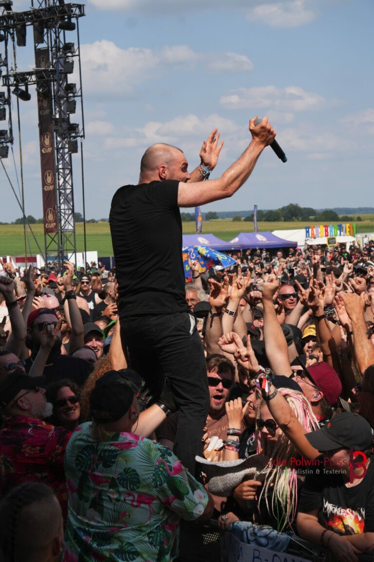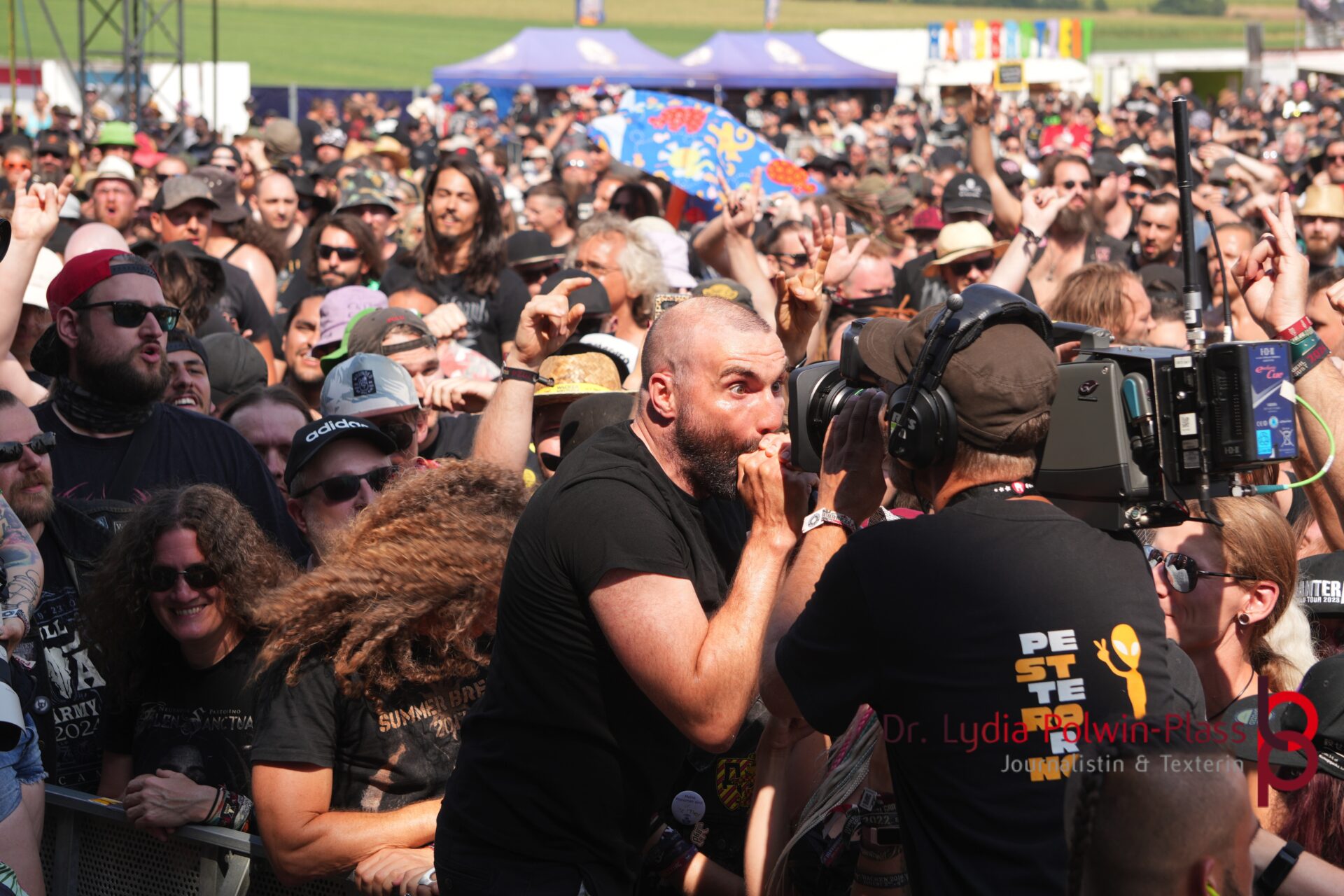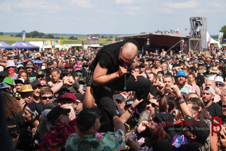 Vorletzter Tag am Summer-Breeze: Der Freitag ist erfahrungsgemäß immer der intensivste Tag auf Festivals. Am Summer-Breeze 2024 startete er für mich gleich mal mit MEGAHERZ und danach mit den Publikumsmagneten von NEAERA, einer Band, die es versteht ihren Fans so richtig einzuheizen. Nicht nur, dass der Frontmann einen großen Teil des Gigs aus dem Publikum heraus performte, auch die Musik hat so viel Kraft, dass es eine wahre Freude ist.