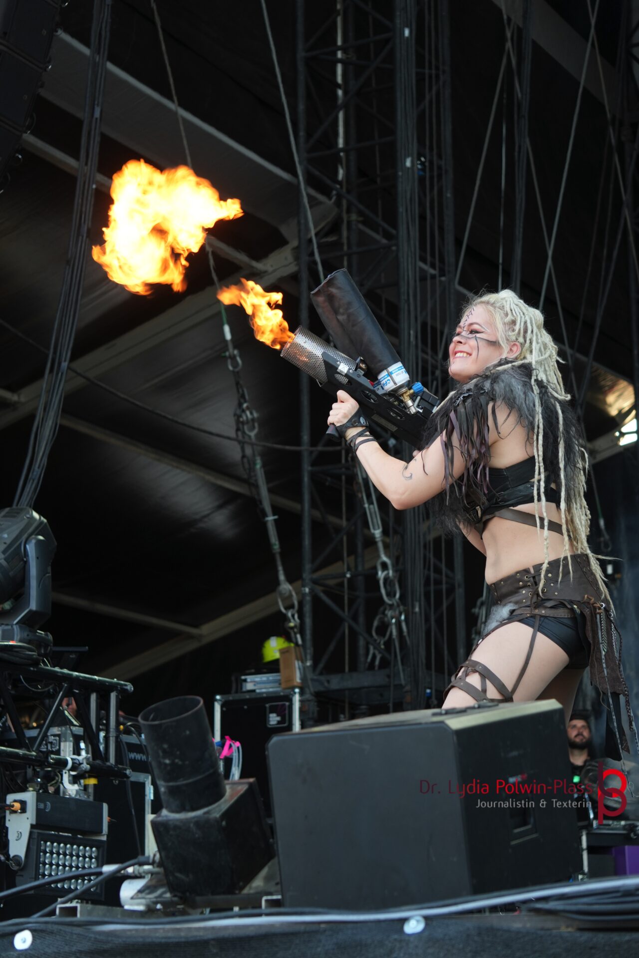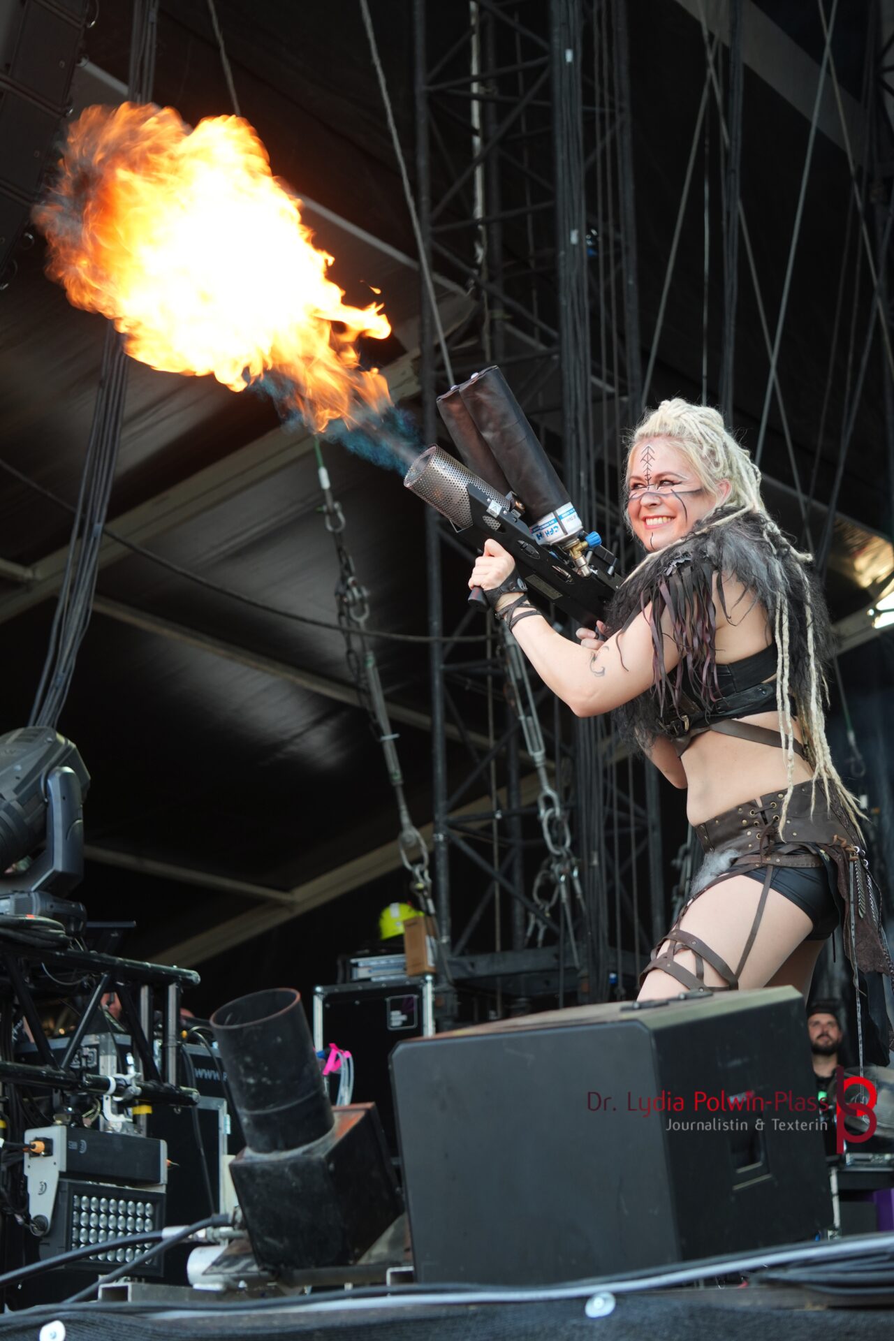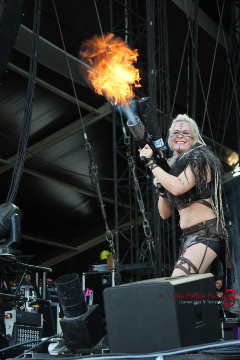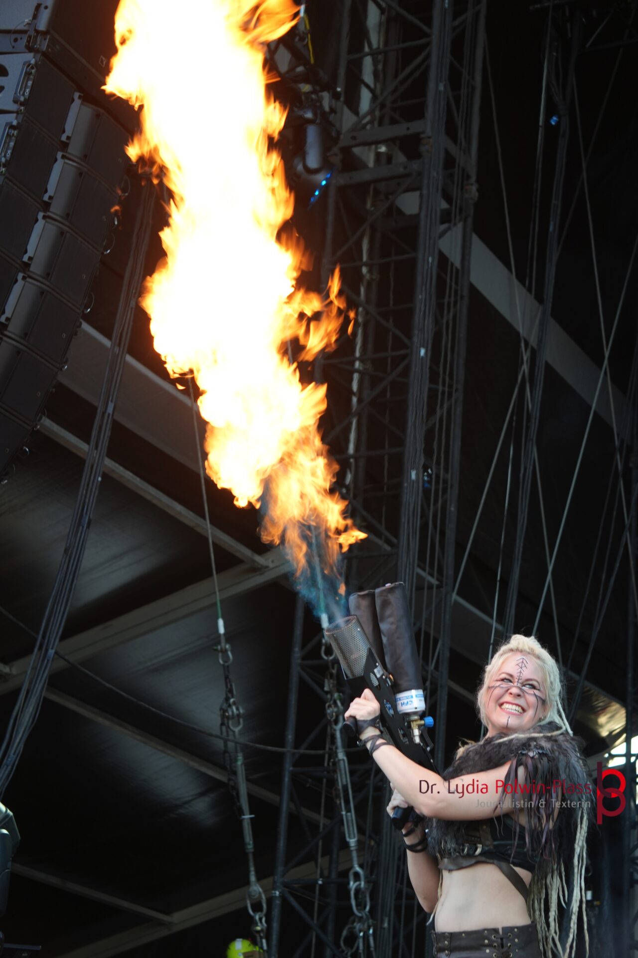 Die femalefronted Band DELAIN ließ es etwas ruhiger angehen, danach krachte es wieder ordentlich mit MOTIONLESS IN WHITE. FEUERSCHWANZ arbeiteten wie gewohnt mit jeder Menge Pyrotechnik vom Feinsten und auch AMON AMARTH sind ja für ihre tollen und liebevoll gestalteten Shows bekannt.
