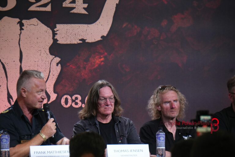 Bei der beeindruckenden Preview-Show für die Acts des nächsten Jahres, die mit einer sympathischen Abschluss- und Dankesrede von Thomas und Holger verbunden war (Bilder findet ihr in der Fotostrecke unten) kündigte eine bildgewaltige Multimedia-Show auf beiden Hauptbühnen die ersten Highlights für das Wacken Open Air 2025 an, das vom 30. Juli bis 2. August 2025 stattfinden wird.