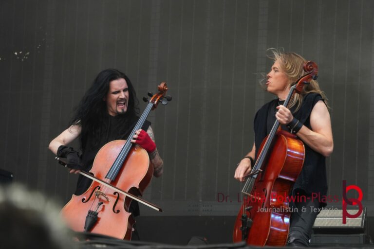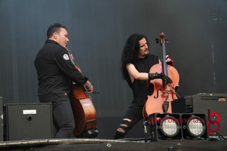 Auf der Faster Stage, einer der beiden Hauptbühnen, und der Louder Stage gingen die ersten Bands an den Start, darunter Enemy Inside, Lita Ford und die finnischen Cellisten Apocalyptica. Für den Abend standen die deutschen Symphonic-Metaller Beyond The Black um die großartige Sängerin Jennifer Haben und das Jubiläumskonzert von Saltatio Mortis auf dem Plan. Die feierten ihr 25-jähriges Bestehen mit einem besonderen Set.